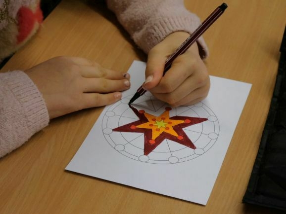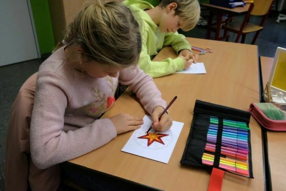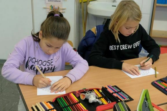 Für die Wunschbaumaktion wurden im Oktober von den 50 SchülerInnen der Grundschule gemeinsam mit ihren Klassenlehrerinnen Julia Nachtheim (1/2) und Janina Baltschukat (3/4) bereits eine große Zahl von Mandalavorlagen in Kunstwerke verwandelt und nun noch einmal.