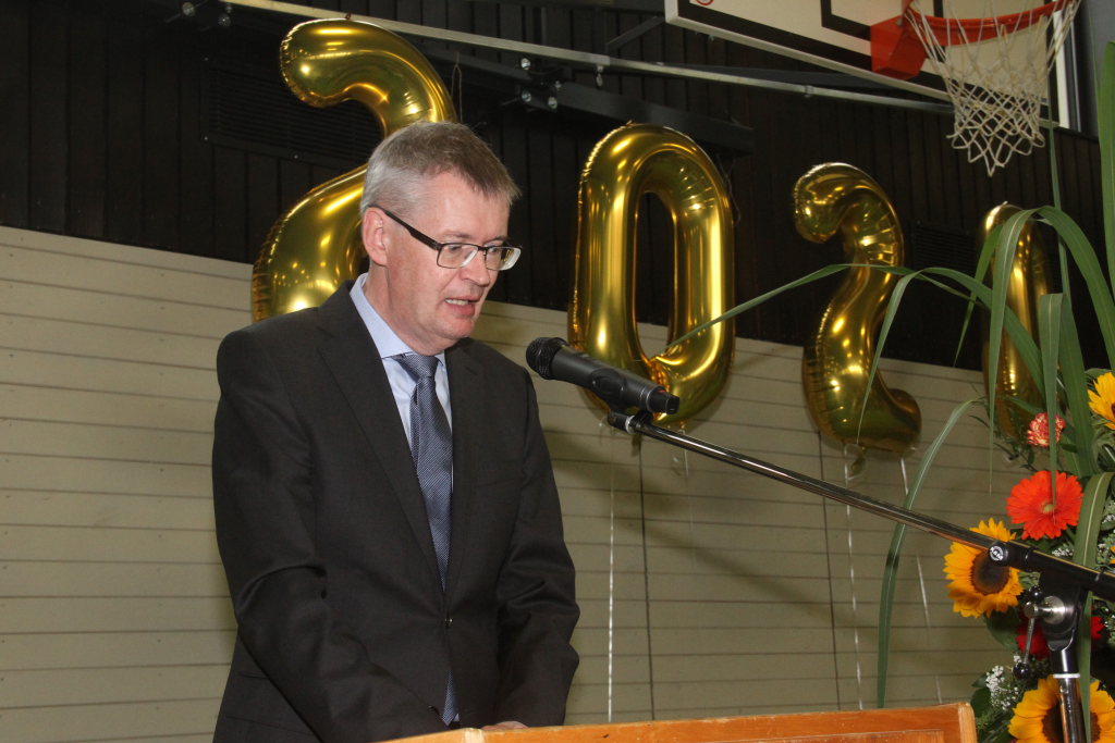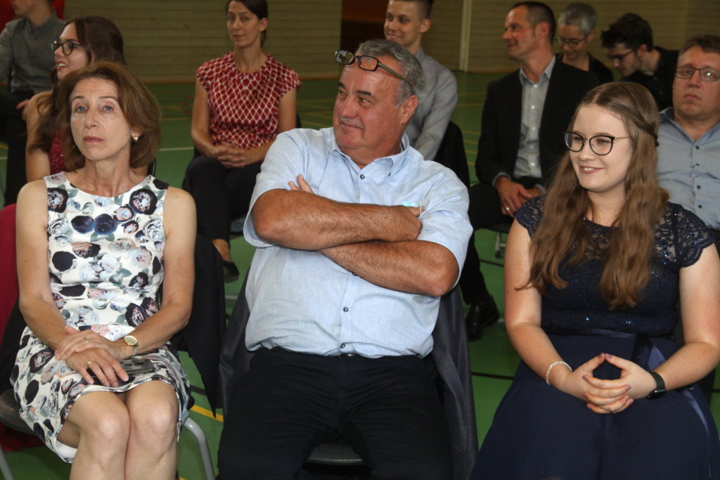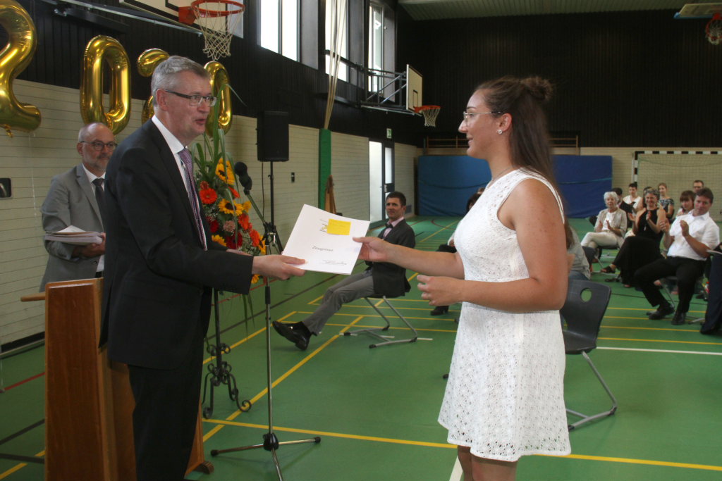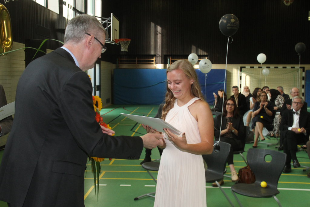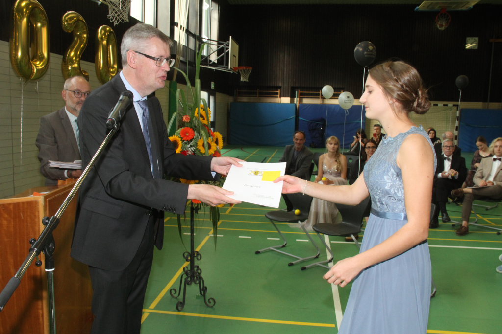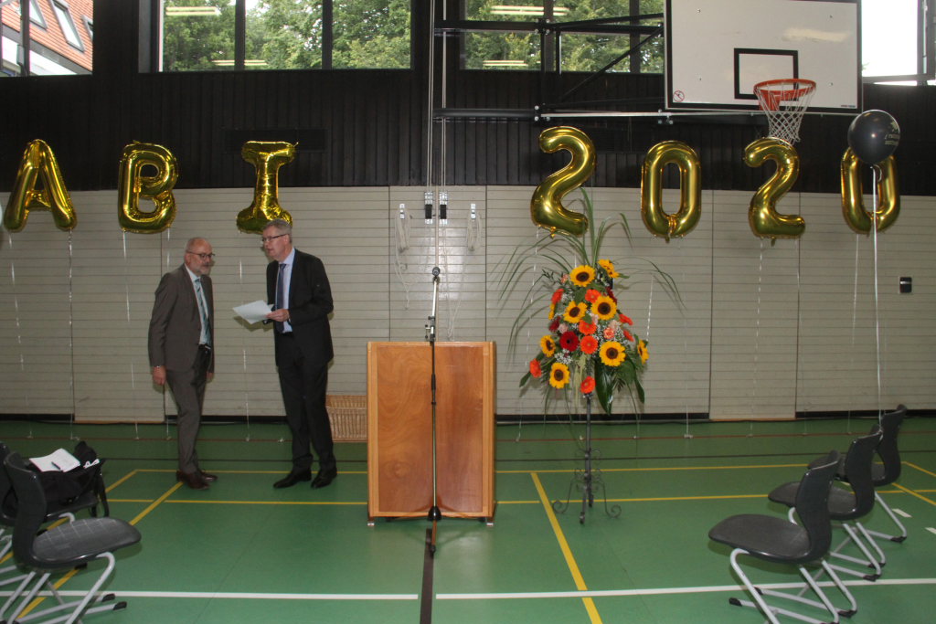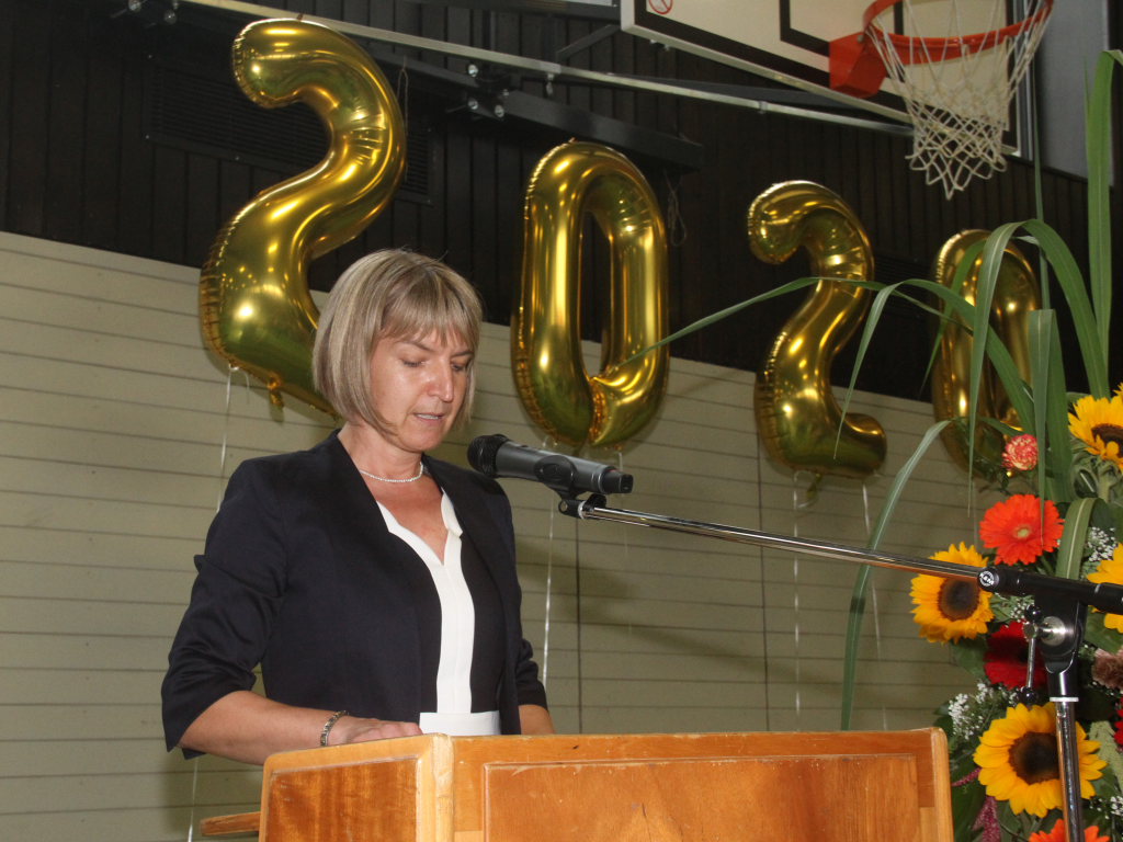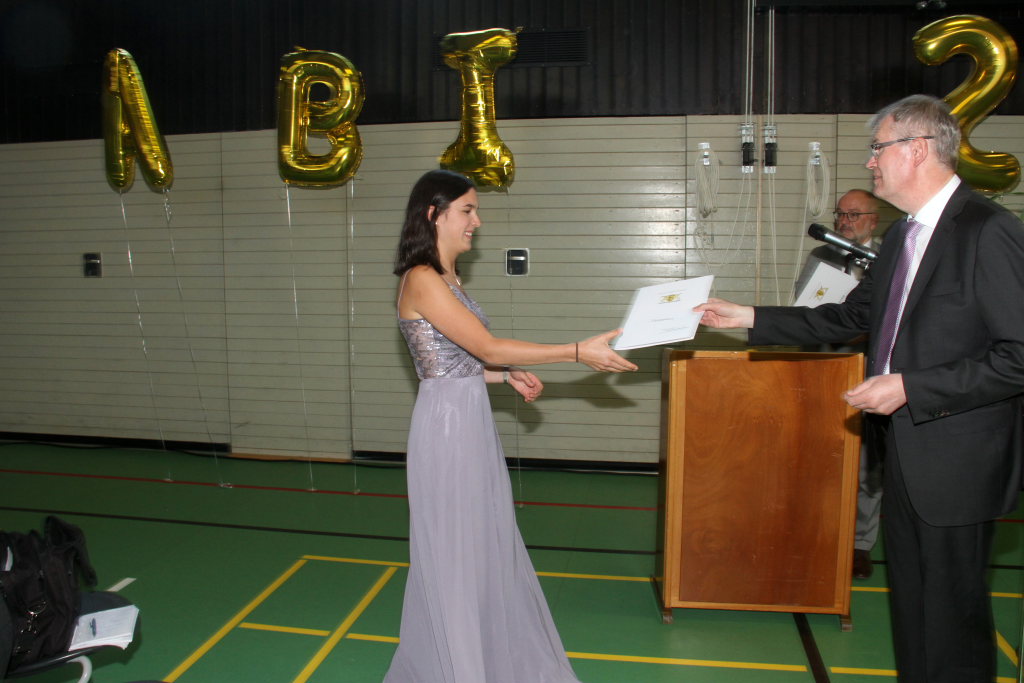 „Wir Eltern, haben uns alle Mühe gegeben und Euch die vergangenen Jahre begleitet, motiviert, mal getriezt, uns gefreut, aber auch gelitten, Daumen gedrückt, Fahrdienste gemacht und zum Dank habt ihr in der Pubertät uns und bestimmt auch manchen Lehrer zur Verzweiflung gebracht.“ Die Lehrer hätten sich dafür eingesetzt, die Persönlichkeit zu fördern und umfassend auf das Leben vorzubereiten, gemäß der Schulphilosophie: Personalität, Spiritualität, Solidarität und Universalität. „Habt den Mut Euch zu Verändern, habt keine Angst vor Fehlern, doch verliert nie den Glauben an Euch selbst“, machten sie den Abiturienten Mut für die Zukunft.