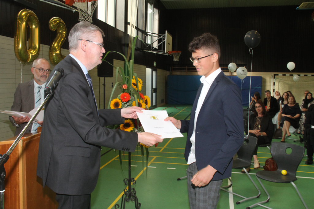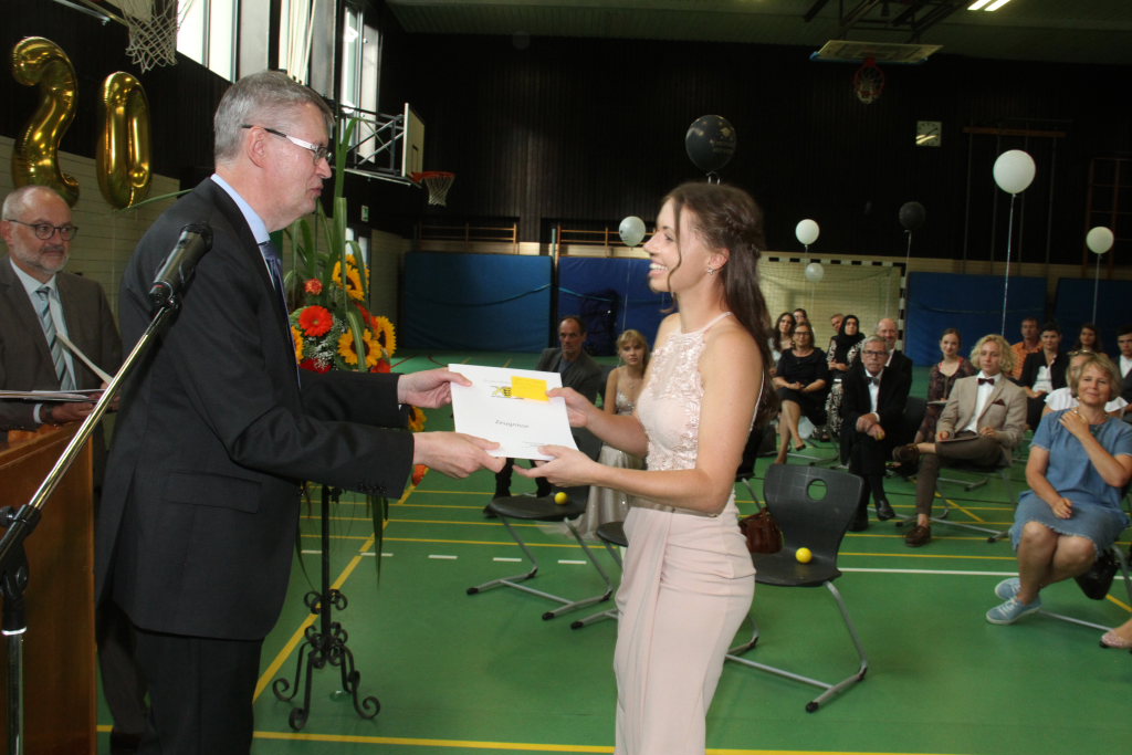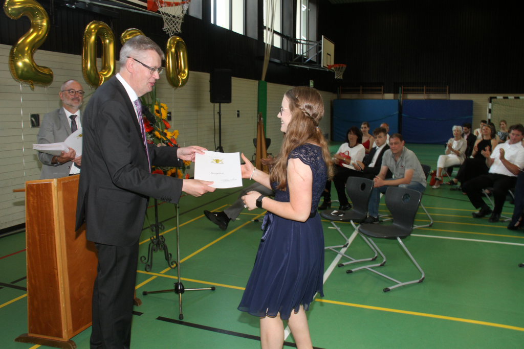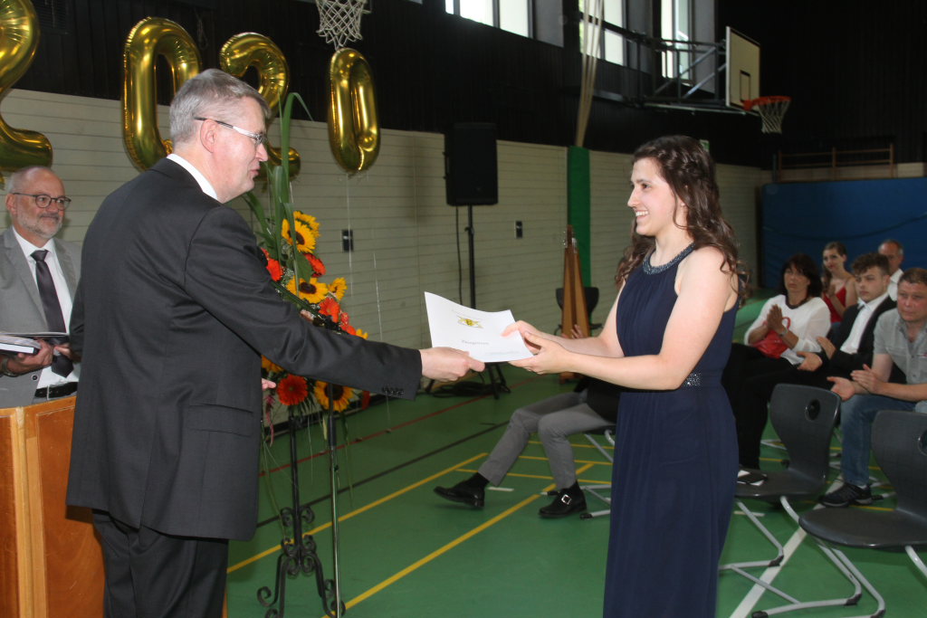 Fünf der 23 mit einem Preis für sehr gute schulische Leistungen ausgezeichneten Abiturienten schafften dabei den Traumdurchschnitt von 1,0, es waren dies David Kling, Katja Jaufmann, Georg Schönit, Simon Hammer und Jana Albrecht. Weitere 11 erhielten für gute schulische Leistungen eine Belobigung. Darüberhinaus wurden zahlreiche Schüler mit Sonderpreisen ausgezeichnet.