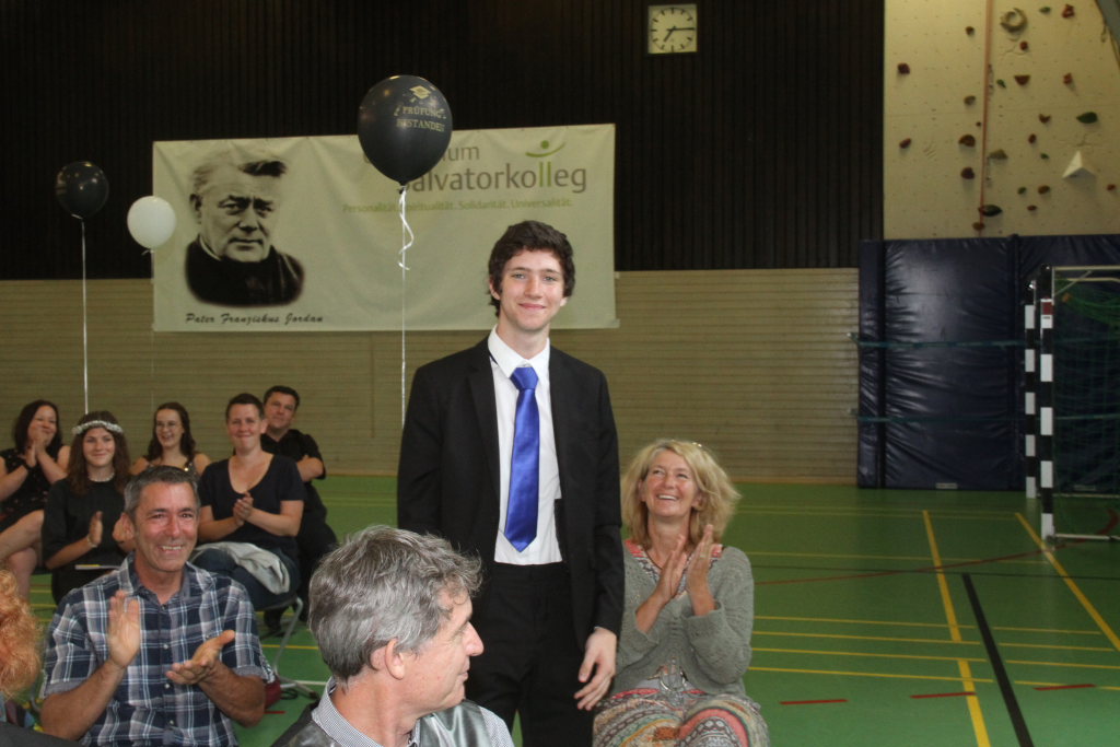 David Kling verwies darauf, „dass die meisten von uns 12 Jahre Schule mitgemacht haben, während denen man den Großteil seiner Lebenserfahrungen gemacht hat.“ Sie hätten sich zu eigenständigen Personen entwickelt und sich ein immenses Allageminwissen angeeignet. Ohne die Schule wäre man nie mit einigen seiner besten Freunde in Kontakt gekommen. Schülern wie Lehrern gehe es doch gleich: Wenn man zurückblicke, kämen viele Erinnerungen an ganz verrückte Sachen, die einem passiert sei, wieder vor Augen. Als Beispiele führte er an, wie eine Lehrerin ein Smartboard mehr oder weniger fachmännisch zerlegte oder ein anderer durch einen elektromagnetischen Schwingkreis eine Beamerlampe ausser Gefecht setzte. „Man sieht also am Salvatorkolleg erfährt man in alle Wissensrichtungen einen umfassenden Praxisbezug.“ Die Lehrer hätten es mit ihnen nicht einfach gehabt, Ordnung und Stille zählten in den acht Jahren nicht gerade zu ihren Stärken, Zusammenhalt und Solidarität seien aber gewachsen.