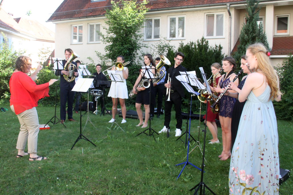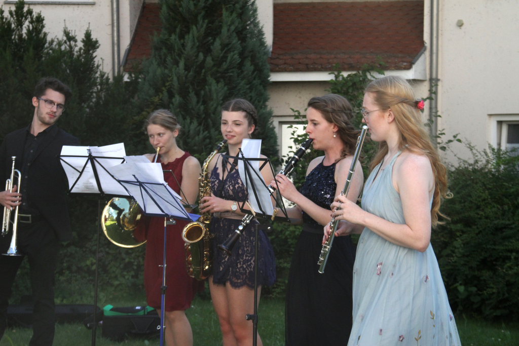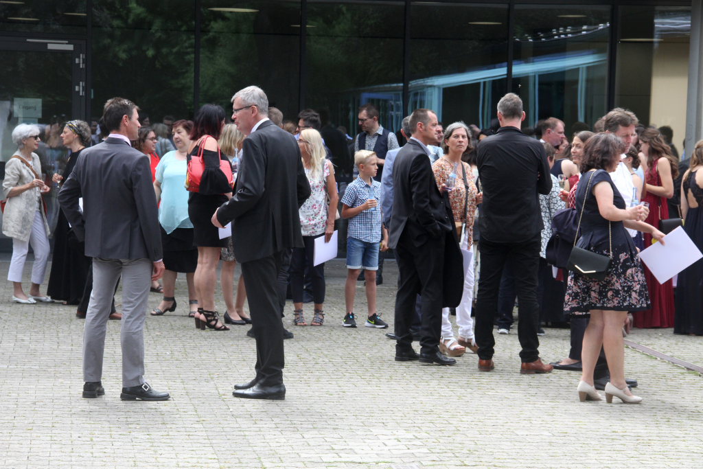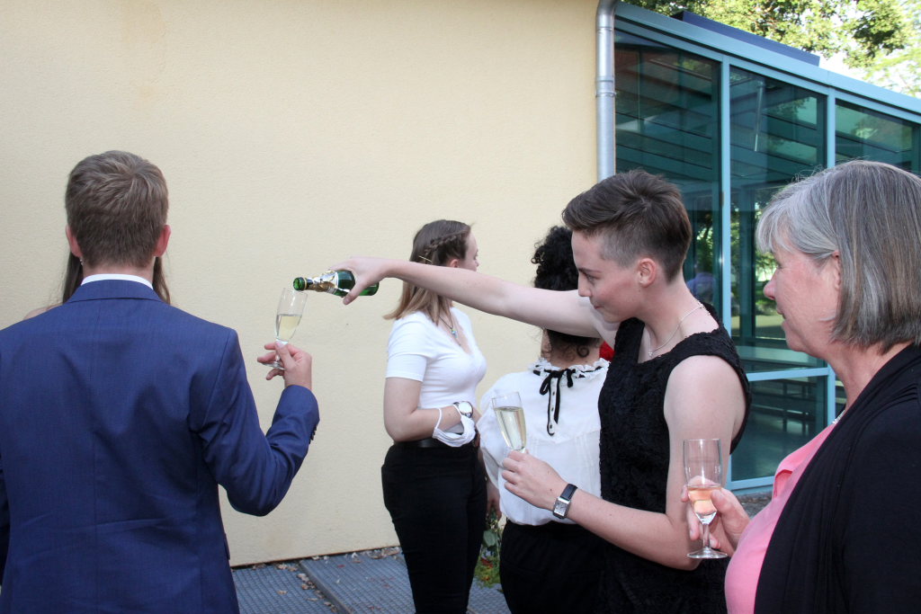 Nach einem weiteren Musikstück verlagerte sich die Festivität bei bestem Wetter zu einem Glas Sekt in den Schulhof.