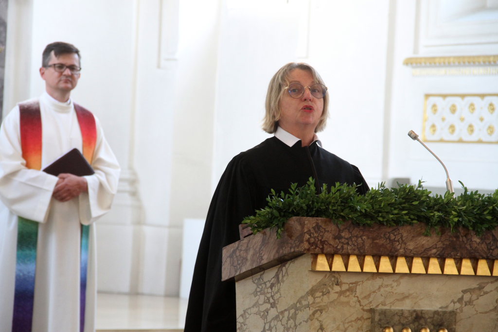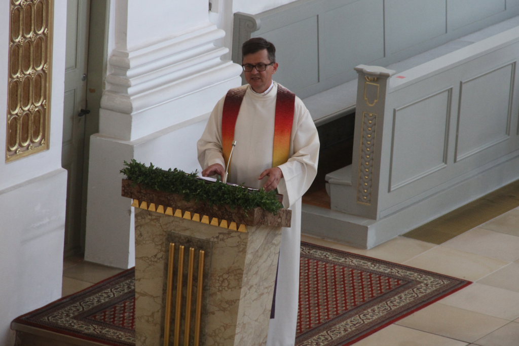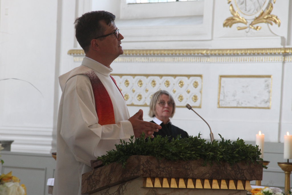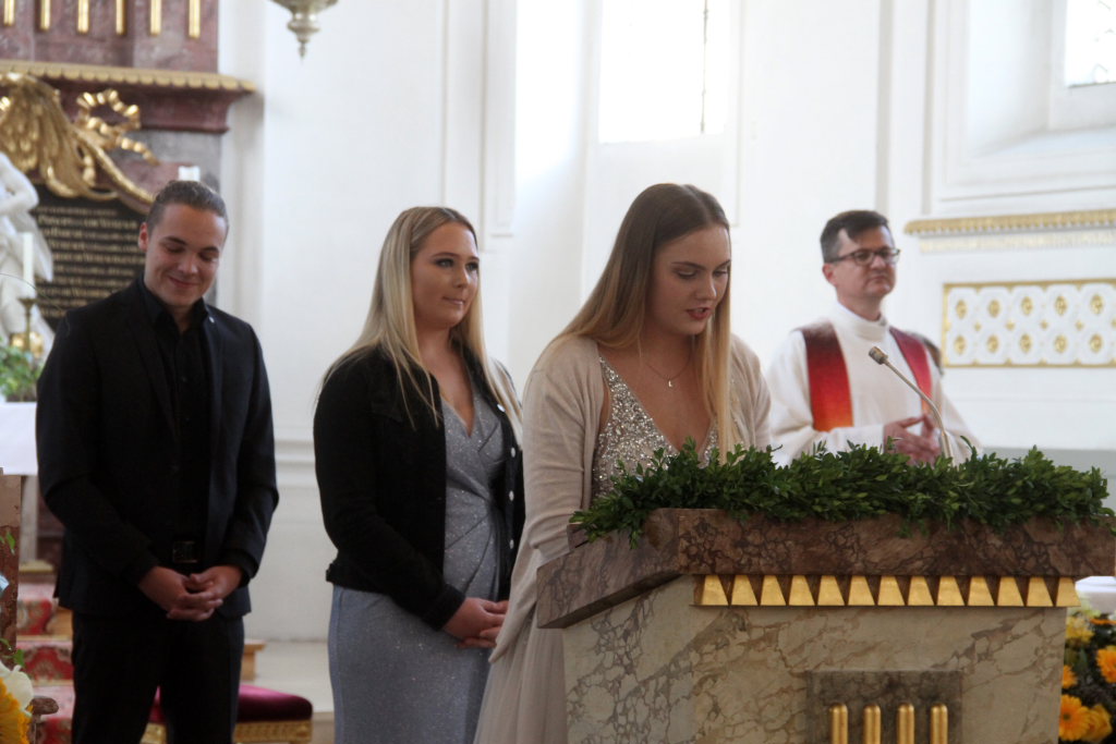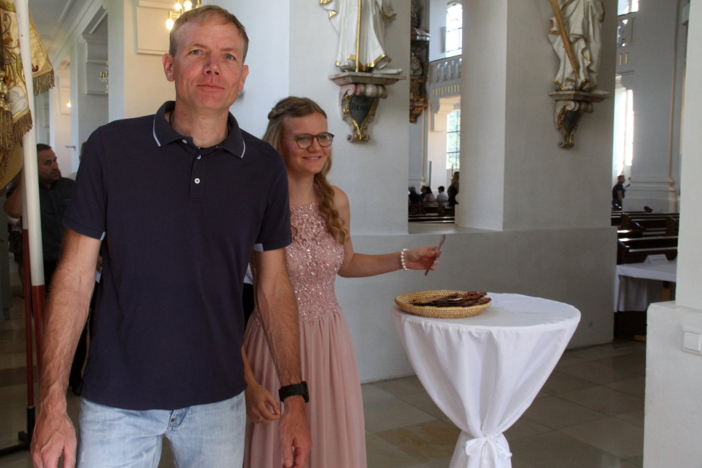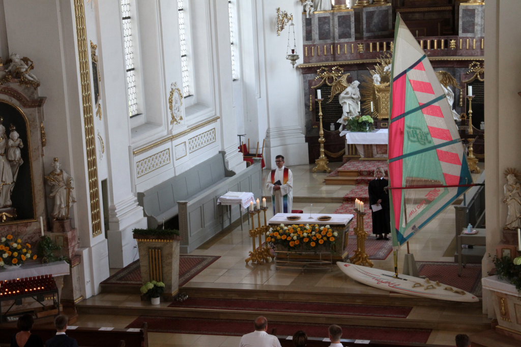 Gleich dreimal, einmal am Freitagabend, und jeweils am Samstagmittag und am Samstagabend bildete ein von Schulseelsorger Pater Mariusz und der evangelischen Pfarrerin Barbara Vollmer gehaltener Gottesdienst den Auftakt der Feierlichkeiten. „Das Segel gibt die Richtung vor, nicht der Wind,“ sagte er in seiner kleinen Ansprache in der mit einem großen Surfsegel dekorierten St. Verena Kirche.