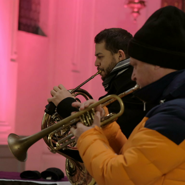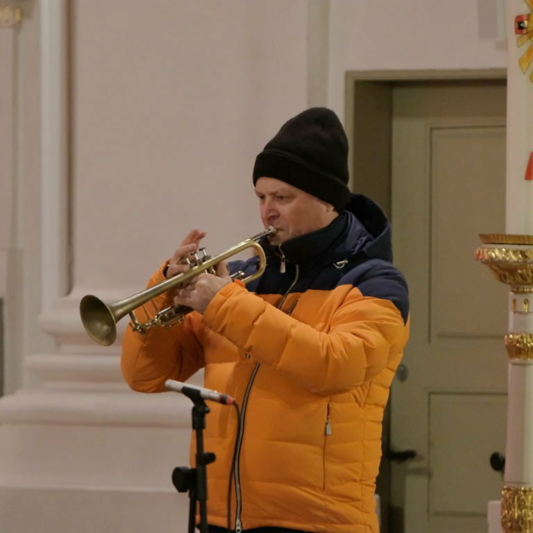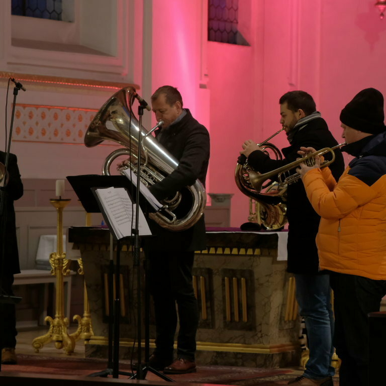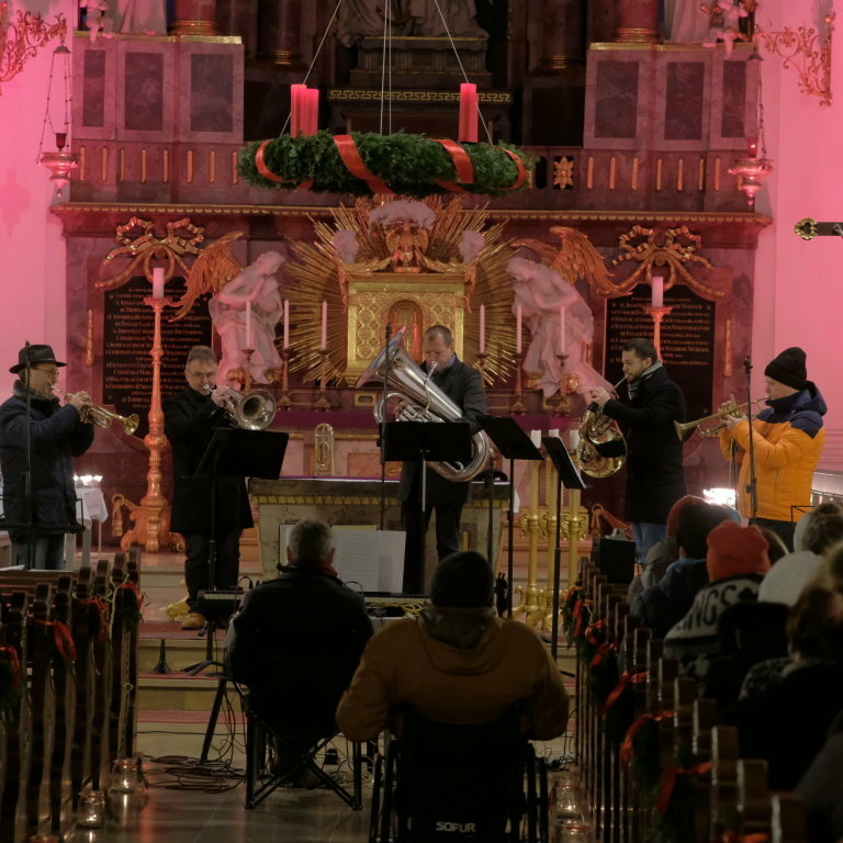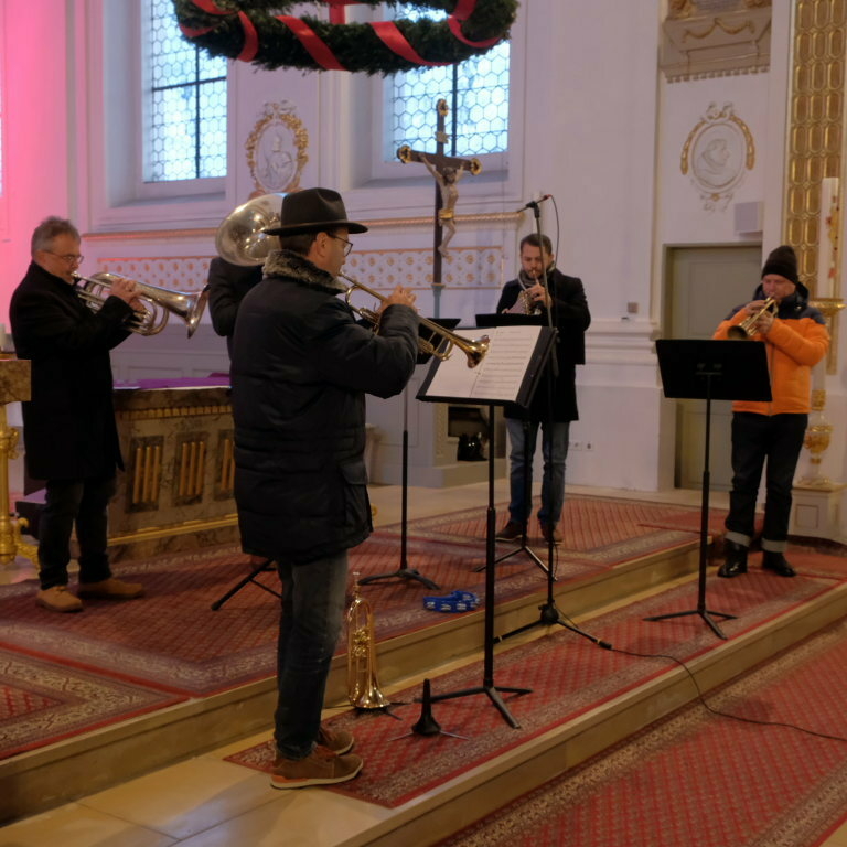 Die MKD 5 Brass startete in ihren ersten Konzertteil mit „The first Noel“ einem traditionellen englischen Weihnachtslied, das das erste Weihnachtsfest überhaupt – nämlich die Geburt Christi - beschreibt. Für ihren ersten Konzertteil hatten Die fünf Musiker der Musikkapelle Deuchelried eher besinnliche Stücke ausgewählt. Und obwohl zwischen „Maria durch ein Dornwald ging“ und „Happy Xmas (War is over)“ von John Lennon und Yoko Ono fast 400 Jahre liegen, haben sie doch dasselbe und nach wie vor hochaktuelle Thema: Die Sehnsucht der Menschen nach Frieden und unbeschwertem Leben.