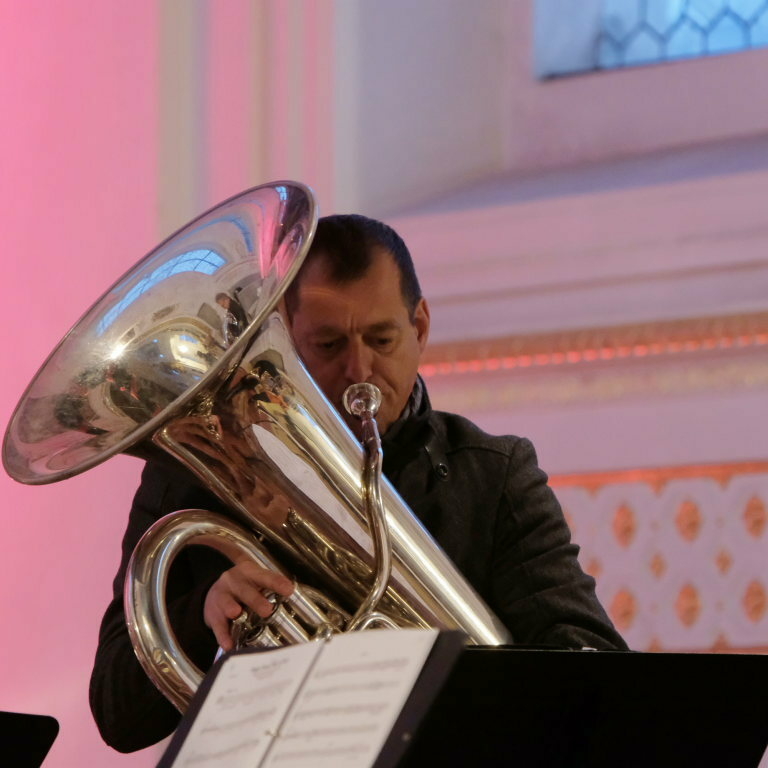 International und bedeutend fröhlicher stimmte die MKD 5 Brass ihren zweiten Konzertteil an. Nach dem Intrade „We wish you a merry christmas“, das auch die Keimzelle des auch im Allgäu üblichen Brauches des Schnurrantentums war –Musikanten ziehen zwischen Weihnachten und Neujahr durch das Dorf und freuen sich über Spenden für die Musikkapellen, aber auch über flüssige und süße Gaben – ging es mit amerikanisch weiter mit „Santa Baby“. Eines der wenigen Weihnachtslieder, das von einer Frau (Joan Javits) geschrieben wurde und von einem eher exklusiven Wunschzettel mit Zobelpelz, Yacht und Christbaumschmuck von Tiffany handelt.