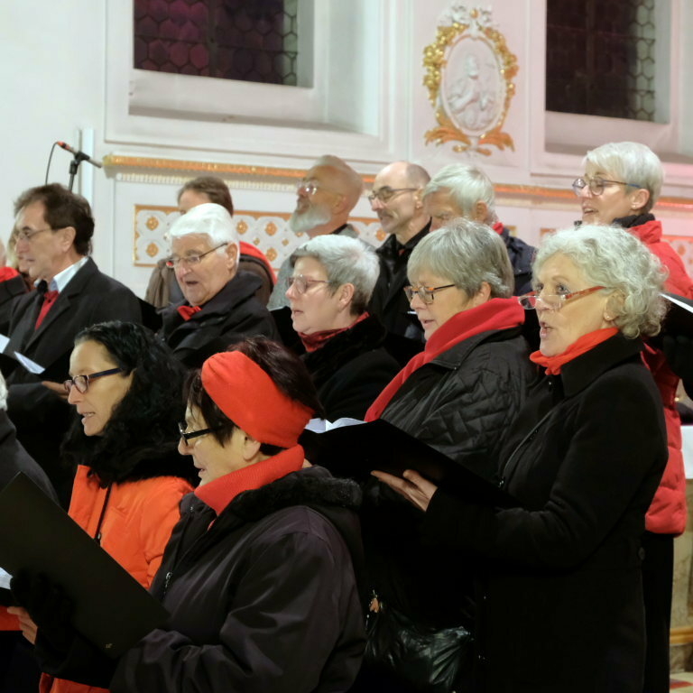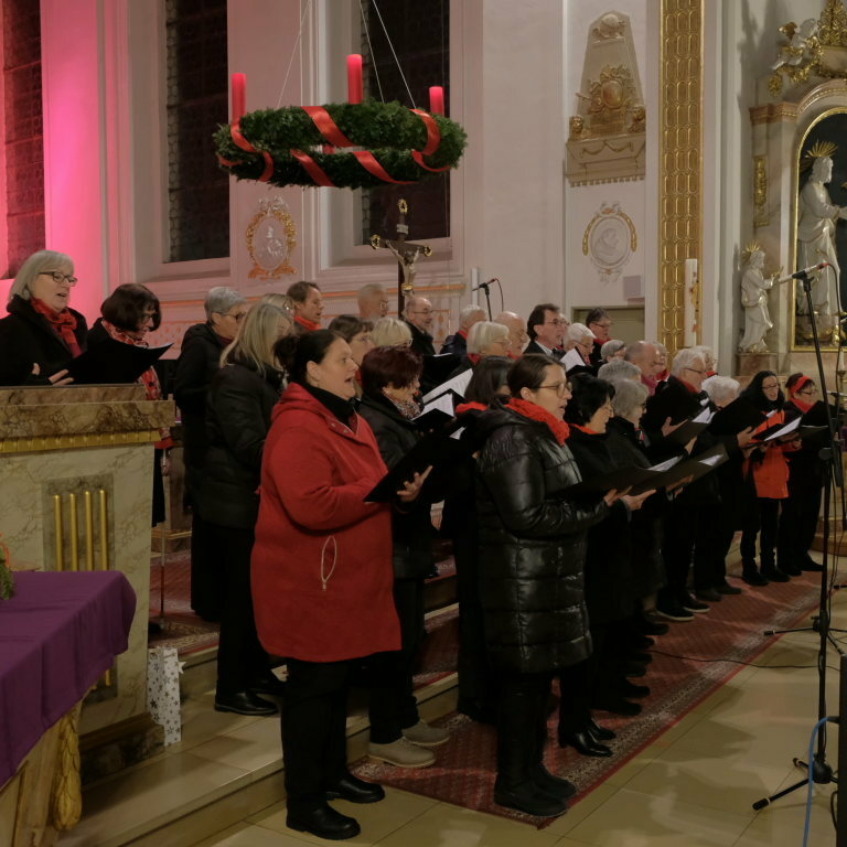 Mit Händels „Freuet Euch all“ und „Tochter Zion“ eröffnete Chorleiter Kaan Kara das Konzert in St. Verena mit klassischen Adventsmelodien. Mit „Schmückt den Saal“ und dem alten Sternsingerlied aus dem Weihnachtsbrauchtum der deutschsprachigen Schweiz „Engel auf den Feldern singen“ brachten die rund 40 Sängerinnen und Sänger auch zwei Weihnachtskinderlieder in der gut gefüllten St. Verena Kirche den Besuchern, darunter auch Bürgermeisterin Alexandra Scherer und Stadtpfarrer und Hausherr Stefan Maier, zu Gehör.