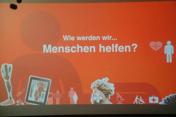 Die Thematik „Menschen helfen“ wurde den Jugendlichen am Beispiel von Bioprinting, dem Druckverfahren mit einem „Organdrucker“ vorgestellt. Schon heute ist es möglich, menschliche Körperteile oder Hautbereiche per 3D-Drucker herzustellen. Die Druckermaterialien werden dabei zuvor mit persönlichen Stammzellen vorpräpariert, und dann auf ein Enzymgerüst übertragen, wo dieses dann mit Wachstumsfaktoren Zellen produzieren kann.