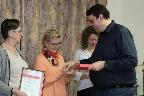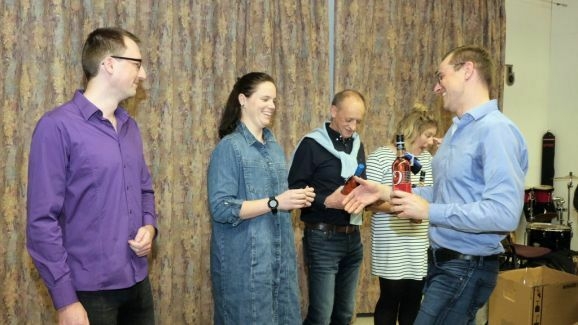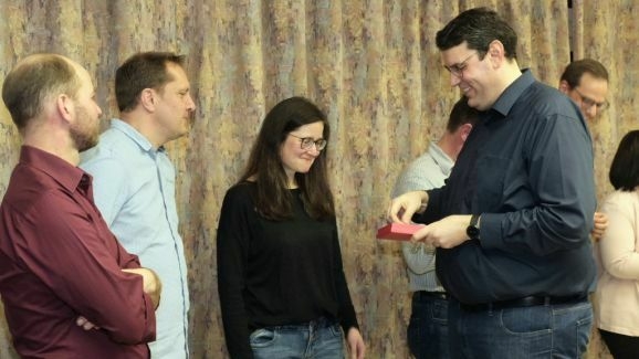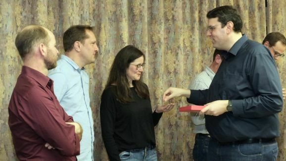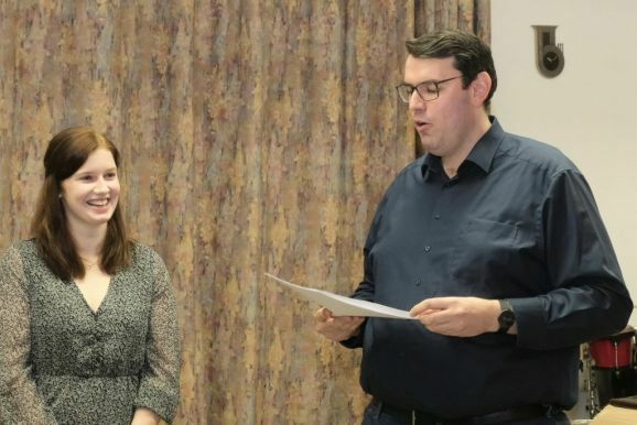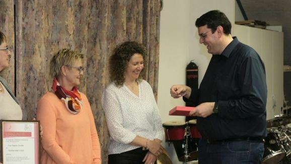Zum Abschluss der Ehrungen war es Vorstand Günther Herdrich ein besonderes Anliegen, sich bei Dirigentin Petra Springer mit einem Geschenk zu bedanken: „Was Du nicht nur vorne am Dirigentenpult leistest, sondern was Du auch im Hintergrund organisierst und machst, ist echt gigantisch. Für Dich als Dirigentin waren die letzten drei Jahre nicht einfach, weil man nichts planen konnte. Trotz der vielen Rückschläge hattest Du immer wieder neue kreative Ideen, um den Verein in diesen ruhigeren Zeiten am Leben zu erhalten.“