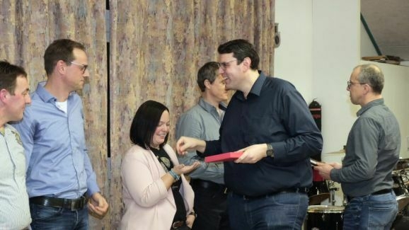 In diesen Genuss kam auch Vorstand Günther Herdrich, der 2019 von der Trompete zur Tuba wechselte und für 30 Jahre Treue zur Musik mit der Ehrennadel in Gold mit Urkunde geehrt wurde. Zusätzlich erhielt er die Fördermedaille in Silber für 15 Jahre Tätigkeit im Vorstand.