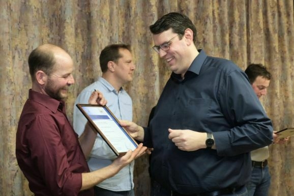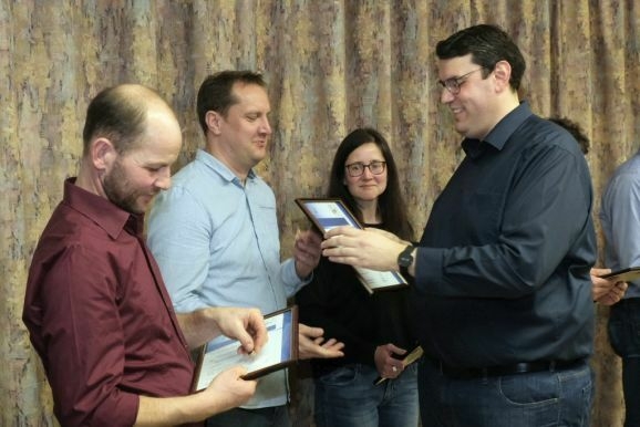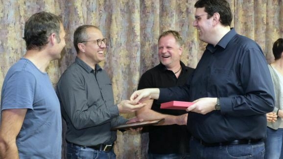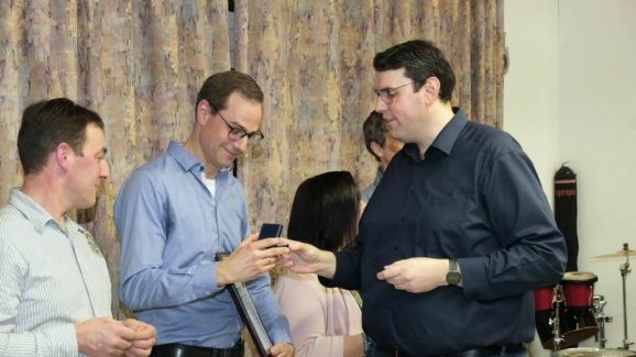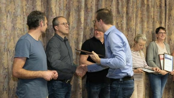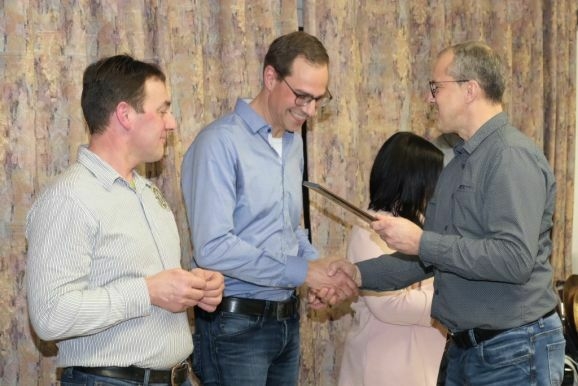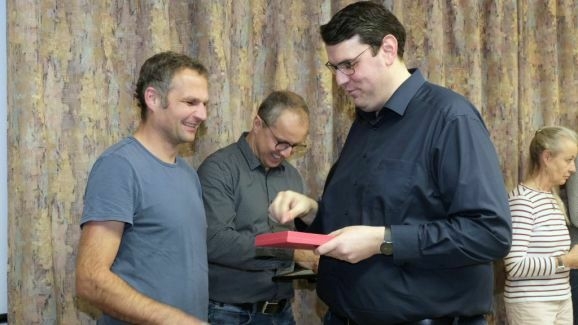 Ebenfalls die Ehrennadel in Gold mit Urkunde erhielten noch weitere Musiker von Klaus Wachter überreicht. Bernd Grösser stellt häufig seine handwerkliche Begabung unter Beweis und sein Bruder Stefan Grösser ist seit vielen Jahren 1. Vorstand des Fördervereines. Werner Herdrich hilft häufig mit seinen landwirtschaftlichen Geräten bei Freiluftveranstaltungen, während Daniel Menig beim Schnakenfest eine wichtige Arbeitskraft war.
