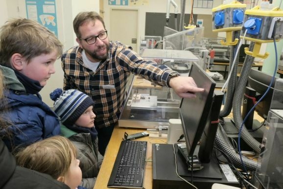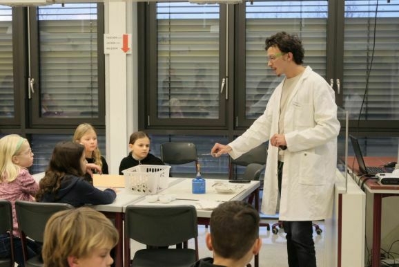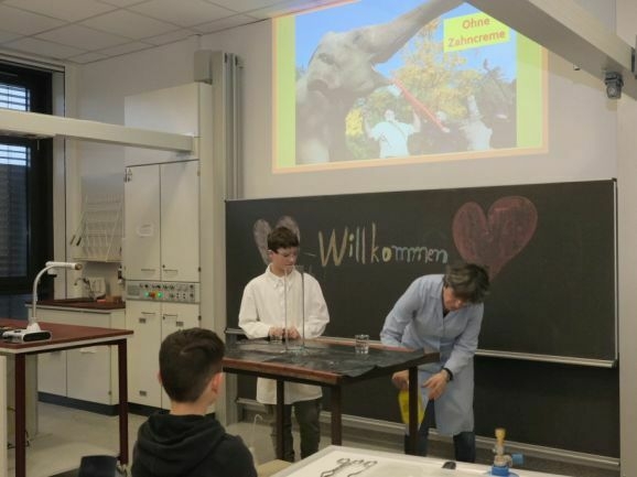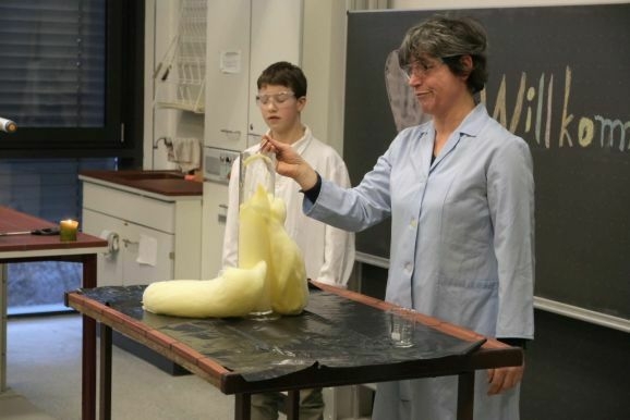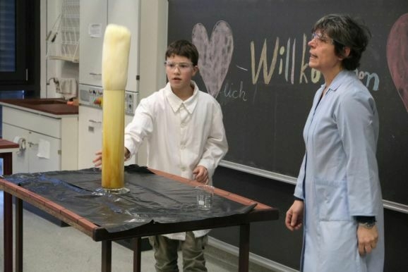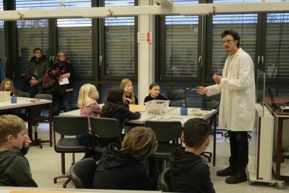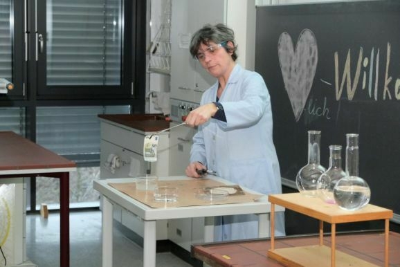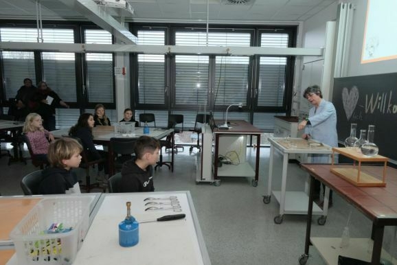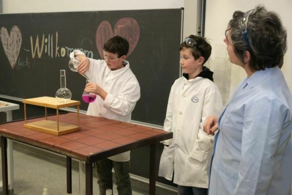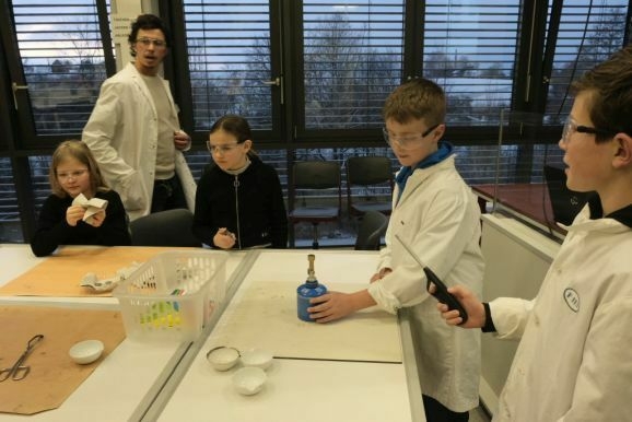 Die musischen Fächer waren ebenso vertreten wie die naturwissenschaftlichen. Besonders im Chemiesaal konnten die kleinen Gäste selbst Hand anlegen und eine 5-Cent-Münze per chemischen Prozess „vergolden“. In der Realschulküche bekamen die Gäste in AES vor Augen geführt wie gesunde Nahrungsmittel allein durch den Zuckergehalt von weniger gesunden unterscheiden.