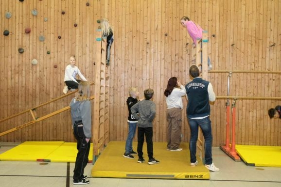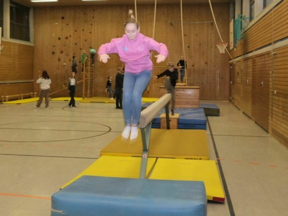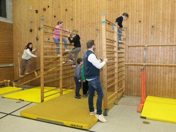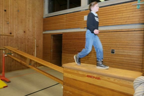 Um zu verhindern, dass diese kulinarischen Köstlichkeiten allzu große Spuren hinterlassen, hatte die Fachschaft Sport in Halle 4 einen formidablen Hindernisparcour aufgebaut, an dem sich die zukünftigen Realschüler noch einmal so richtig austoben konnten.