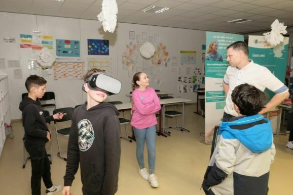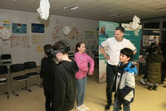 Bei einer Schulhausrallye der SMV hatten die (Noch-)Grundschüler Gelegenheit die verschiedenen Räume kennenzulernen. In Deutsch konnten z. B. sie Märchen aktiv erleben, in Geschichte bekamen sie Einblicke in eine Mittelalterliche Schreibwerkstatt und in WBS bekamen sie Berufseinblicke mit der VR-Brille.