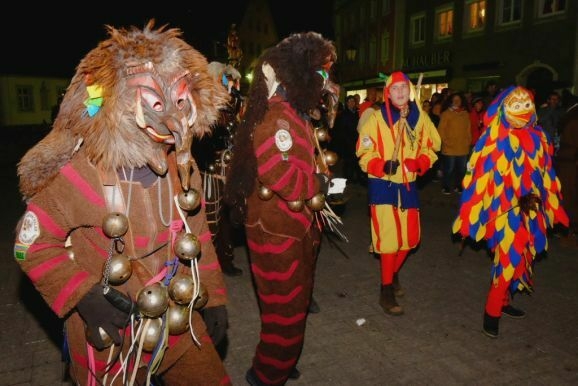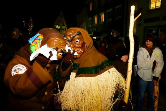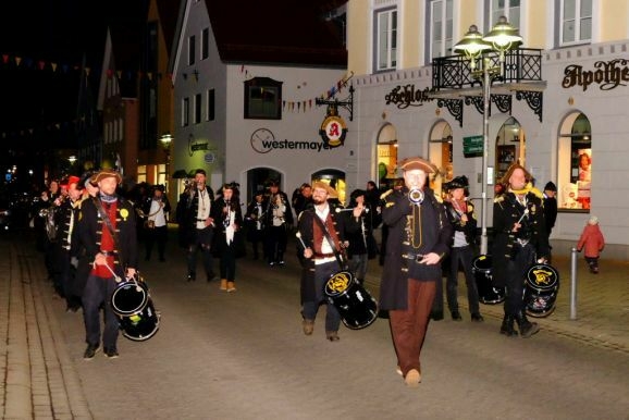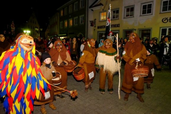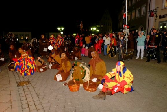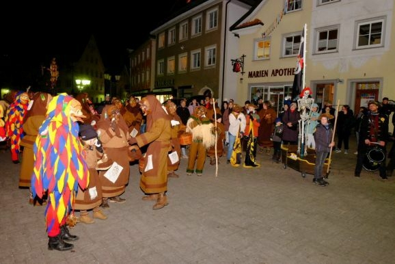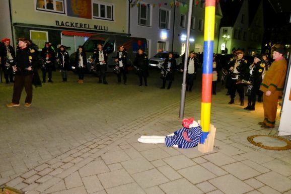 Bad Wurzach - Riedmeckeler, Moorweible, Schnepfla, Muetes, die Burgfrau und der Hopediz – alle waren sie gekommen um zu den Klängen des Fanfarenzuges beim ersten Kehraus seit langer Zeit unter dem Narrenbaum Abschied von Katharina, der personifizierten Fasnet, zu nehmen.
