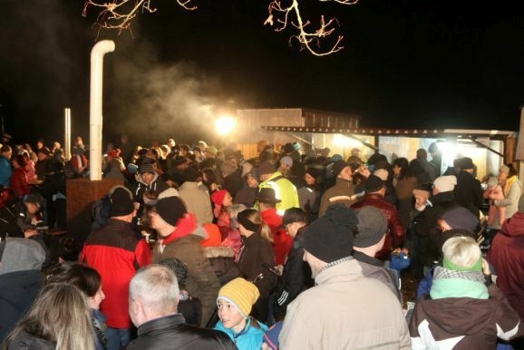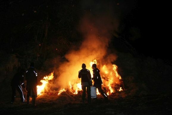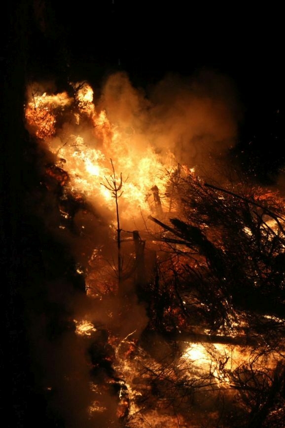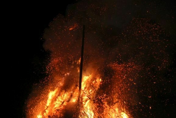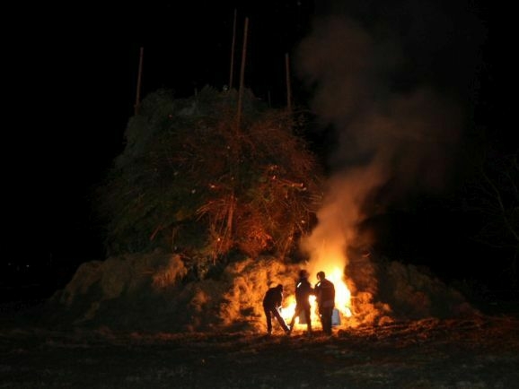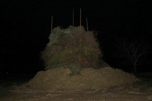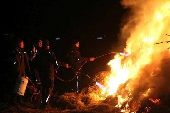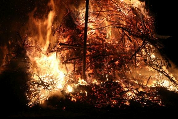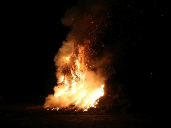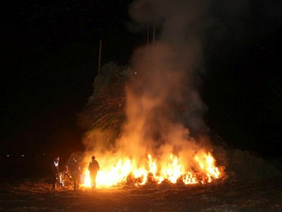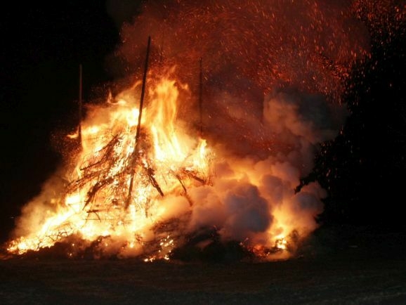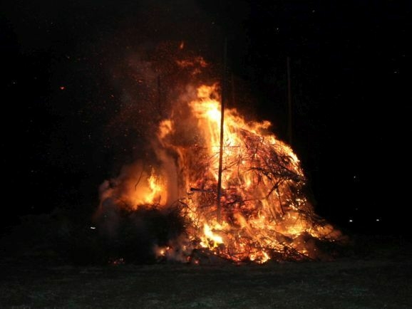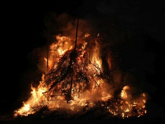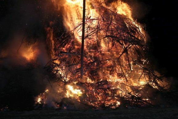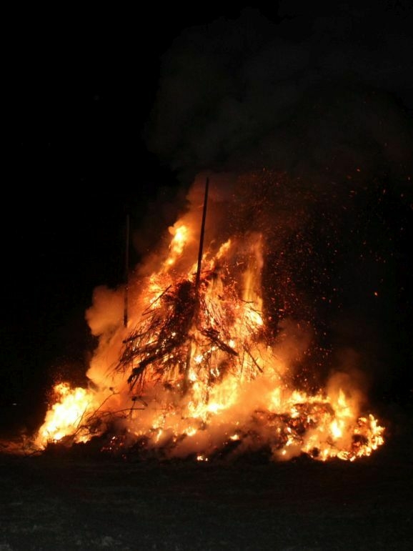 Denn damit wurden die riesigen, zumeist aus ausrangierten Weihnachtsbäumen bestehenden Reisighaufen, noch einmal kräftig durchfeuchtet. Was das Abbrennen, wie jeder weiß, der einmal versucht hat mit feuchtem Holz oder Reisig seinen Kachelofen anzufeuern, zu keinem leichten Unterfangen macht.