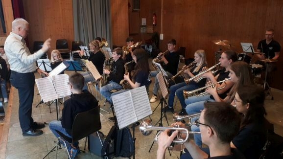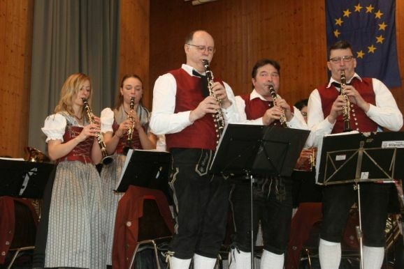 Die Musikanten des MV Seibranz hatten also über die Mittagszeit alle Hände voll zu tun, bis die Willerazhofener nach einigen Zugaben gegen halb zwei die Bühne räumten. Doch danach war noch lange nicht noch Schluss. Rechtzeitig zu Kaffee und selbstgebackenen Kuchen stellten noch einige Seibranzer Jungmusikanten gemeinsam mit einigen „alten Hasen“ unter Dirigent Erich Minsch ihr Können unter Beweis.