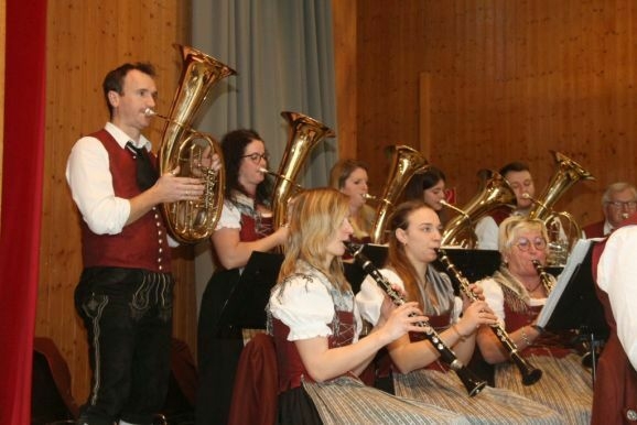 Dass die Musikkapelle Willerazhofen eine herausragende Stimmungskapelle ist – erinnert sei hier nur an den Fahneneinzug ins Festzelt beim Kreismusikfest in Ziegelbach – zeigte sie denn auch an diesem Sonntagmorgen in der Seibranzer Turn- und Festhalle. Ob bei einer mährischen Polka von Vlado Kumpan, der Erkennungsmelodie des Grand Prix der Volksmusik im Fernsehen, die im Arrangement von Martin Scharnagl zu „So schön ist Blasmusik“ wurde, oder auch z.B. bei der Liebeserklärung „Ein Kompliment“ der Sportfreunde Stiller, zahlreiche Solis zeigten, dass die Willerazhofener Musikanten nicht nur als Kollektiv eine starke Leistung abliefern konnten. So wie etwa ihr Musik-Rentner am Alt-Saxophon bei dem zum Klassiker gewordenen Solo von „Baker Street“.