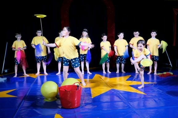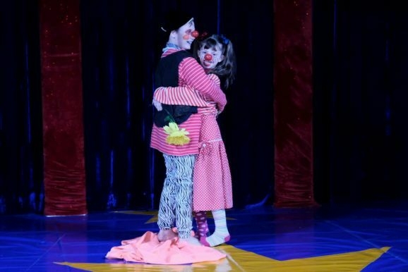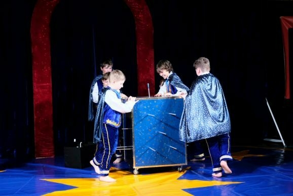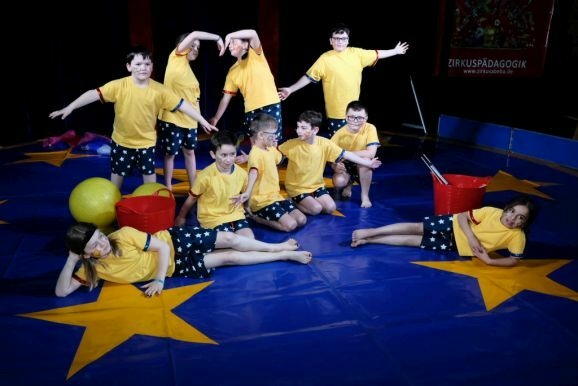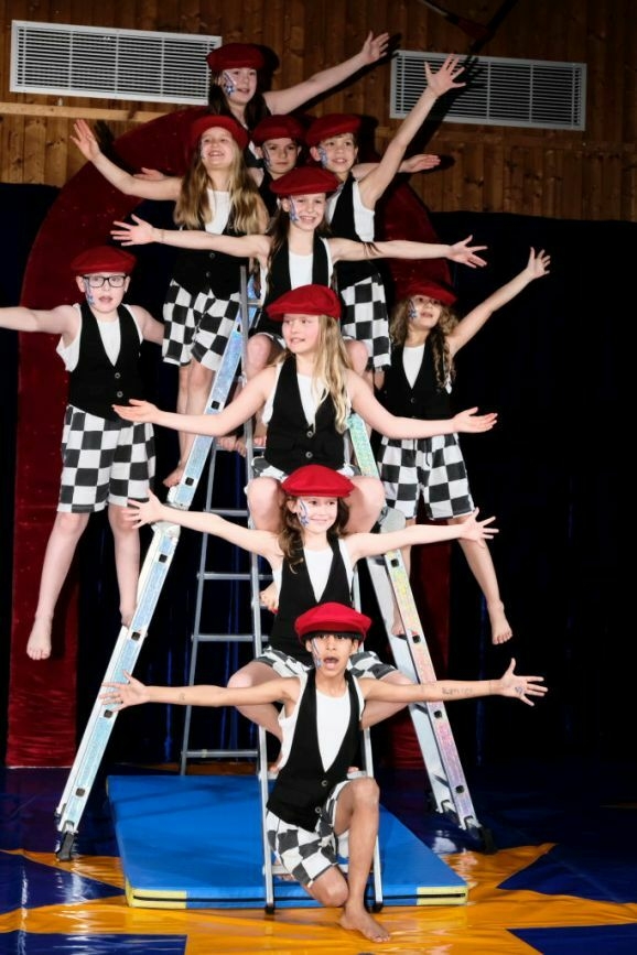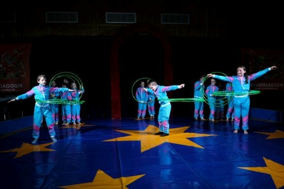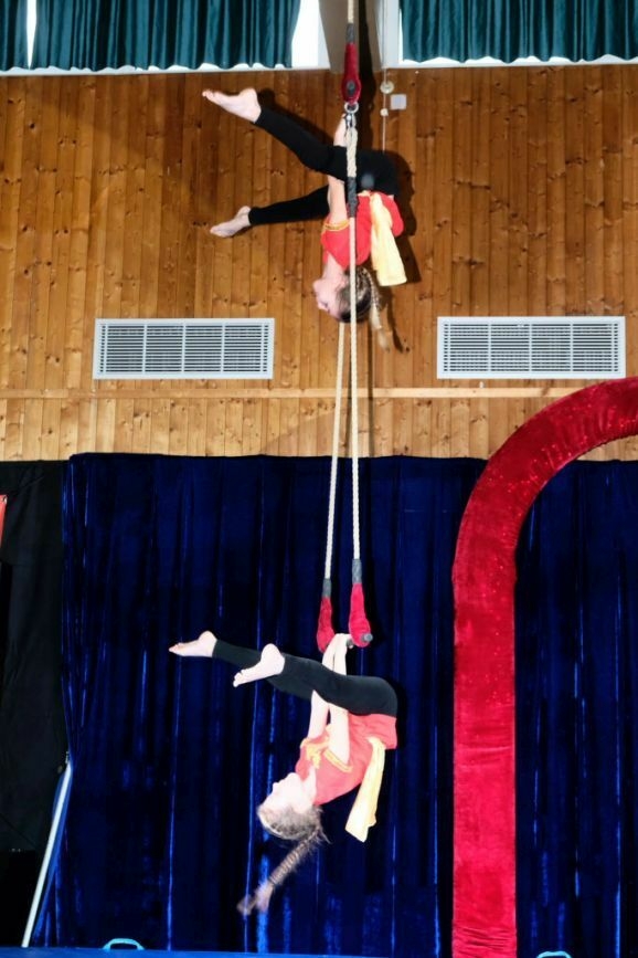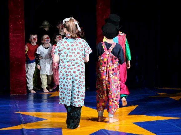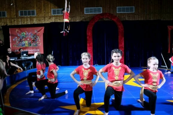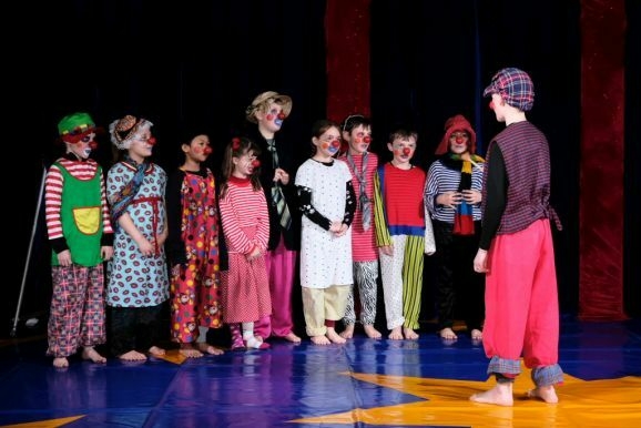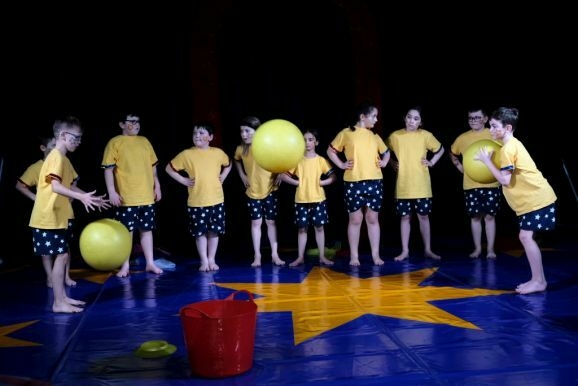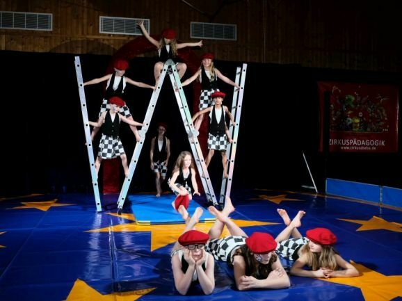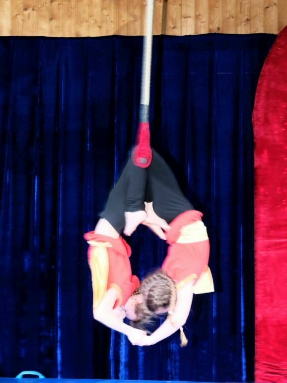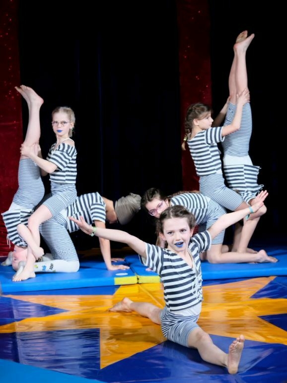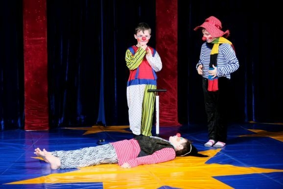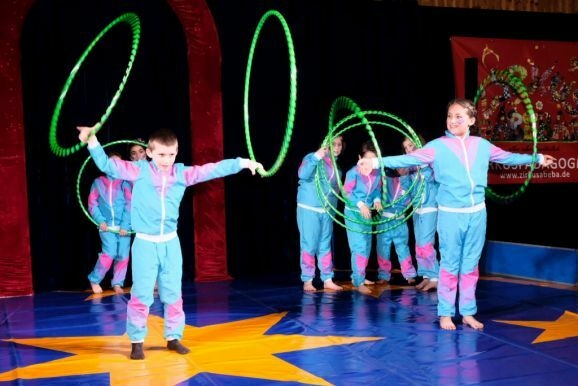 Mit einem Lied begrüßten die Kinder Eltern, Geschwister, Großeltern und Freunde rund um die Manege, ehe die wilde Meute von Clowns, Jonglierern, Zauberern und Akrobaten die Zuschauer richtige Zirkusluft schnuppern ließen. Ob mit Hula Hoop, mit Leitern oder am Trapez, ob mit verblüffenden Zaubertricks oder Zwerchfell angreifende Clownereien, die Kinder waren mit Feuereifer dabei machten die beiden Vorstellungen zu einem unvergesslichen Erlebnis.
