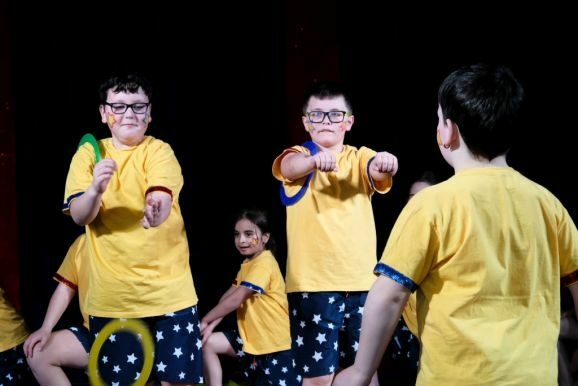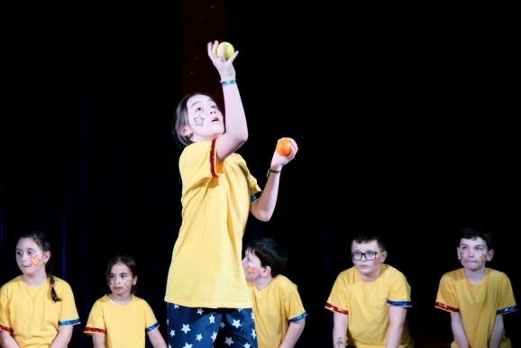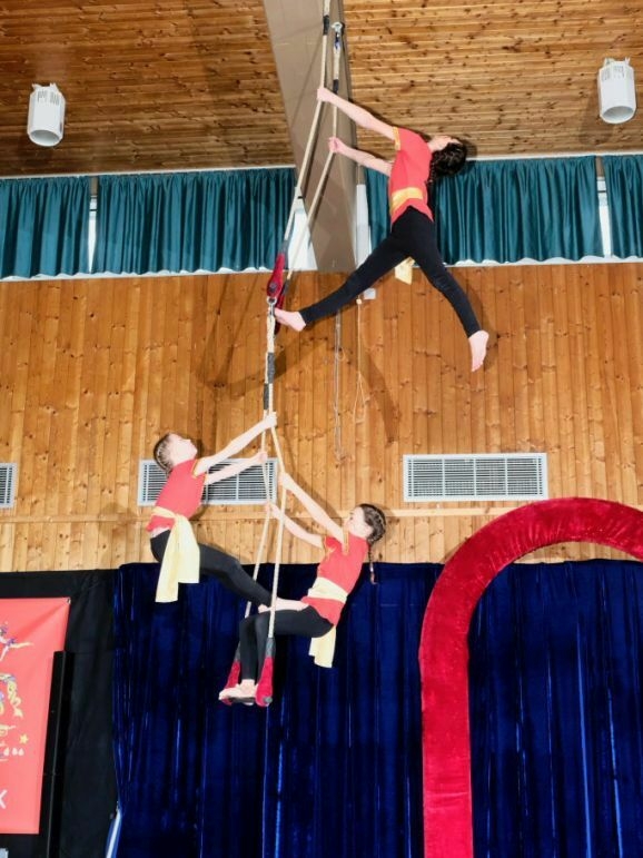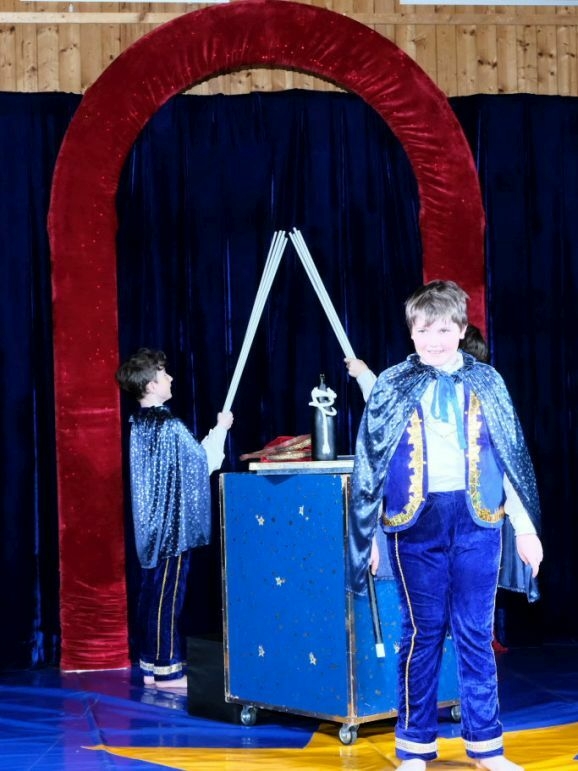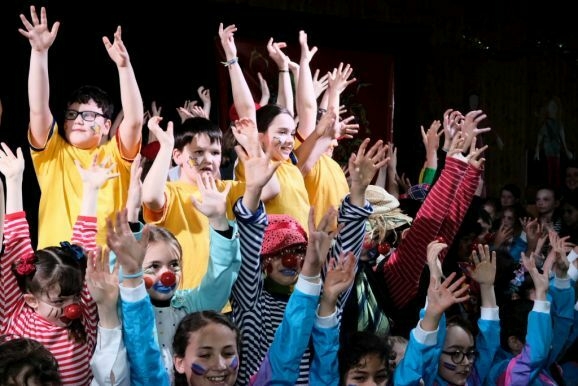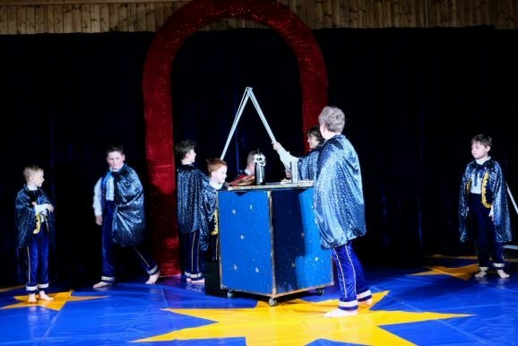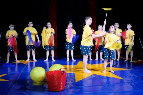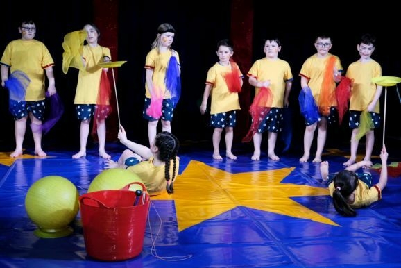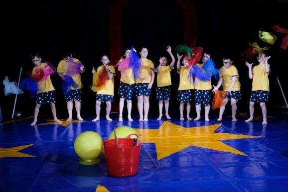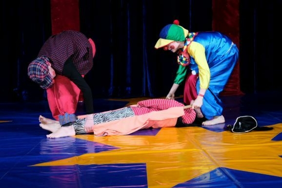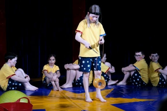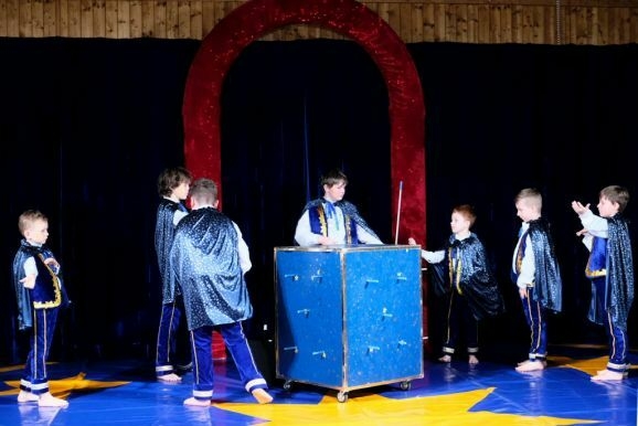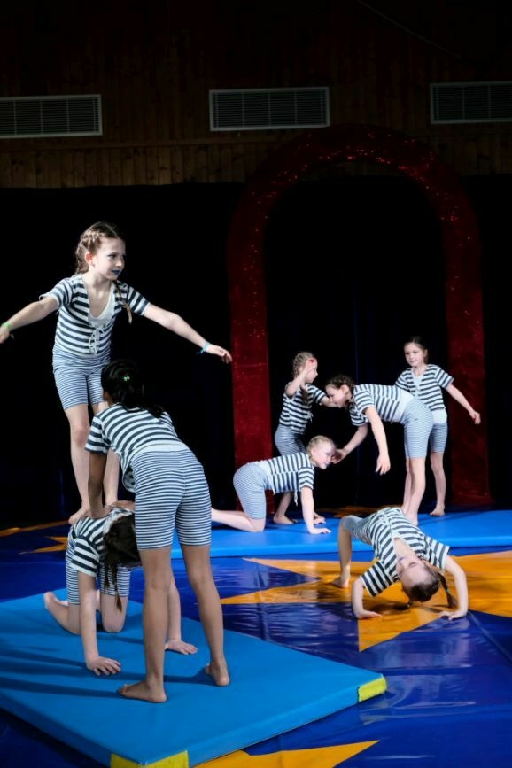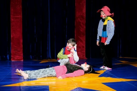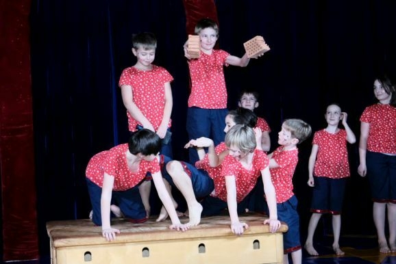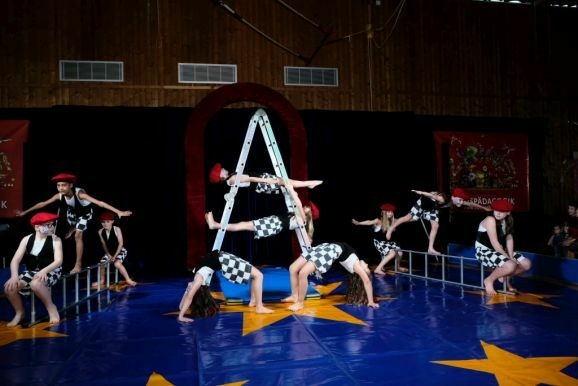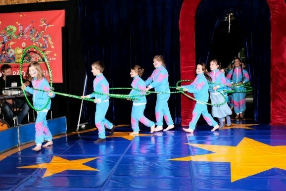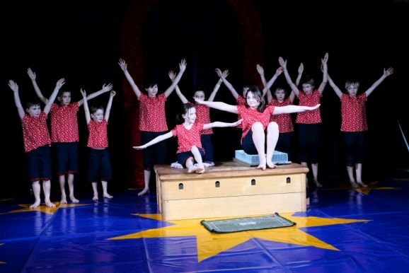 Mit einem Lied begrüßten die Kinder Eltern, Geschwister, Großeltern und Freunde rund um die Manege, ehe die wilde Meute von Clowns, Jonglierern, Zauberern und Akrobaten die Zuschauer richtige Zirkusluft schnuppern ließen. Ob mit Hula Hoop, mit Leitern oder am Trapez, ob mit verblüffenden Zaubertricks oder Zwerchfell angreifende Clownereien, die Kinder waren mit Feuereifer dabei machten die beiden Vorstellungen zu einem unvergesslichen Erlebnis.