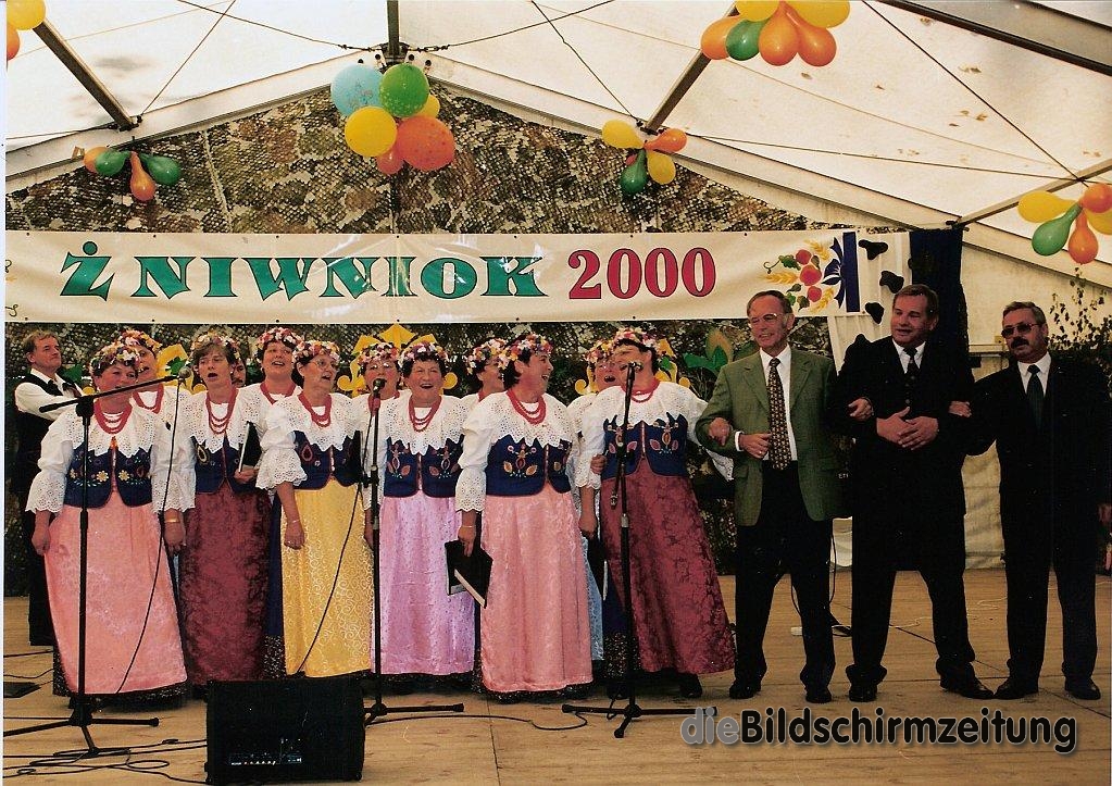 Bürgermeister a.D. Helmuth Morczinietz erzählt auch etwas zu den Beweggründen, warum die polnische Stadt eine deutsche Partnerstadt gesucht hat: „Rund 60 Prozent der Bevölkerung spricht deutsch.“ Ein weiterer Bezugspunkt sei dort der katholische Glauben, über den viele Feste wie das berühmte Erntedankfest gefeiert werden. Er ist aber auch überzeugt, dass es ein glücklicher Zufall war, der die beiden Gemeinden zusammengeführt hat. „Es hat sich für beide Seiten bezahlt gemacht.“ Nach der Unterzeichnung der Partnerschaftsurkunden am 03.10.2000 auch in Bad Wurzach erwuchs in den folgenden Jahren ein reger Austausch von Vereinen, aber auch von Schulen etwa der Werkrealschule mit dem Gymnasium Stare Siolkowice. Ein weiteres Highlight sei auch die Überführung des alten, in Bad Wurzach ausgemusterten Tanklöschfahrzeuges nach Kaniow, einem der vielen Ortsteile von Popielów anlässlich des Erntedankfestes 2001 gewesen, berichtet Norbert Fesseler, der von vielen netten Begegnungen mit den polnischen Feuerwehrkollegen berichten kann. Besonders die Rolle der Abteilung Haidgau hebt der langjährige Stadtkommandant in diesem Zusammenhang hervor. Ein weiterer, von beiden Seiten gefeierter Höhepunkt war der EU-Beitritt Polens 2004.