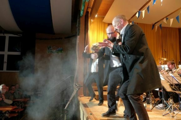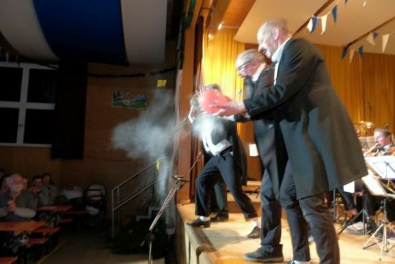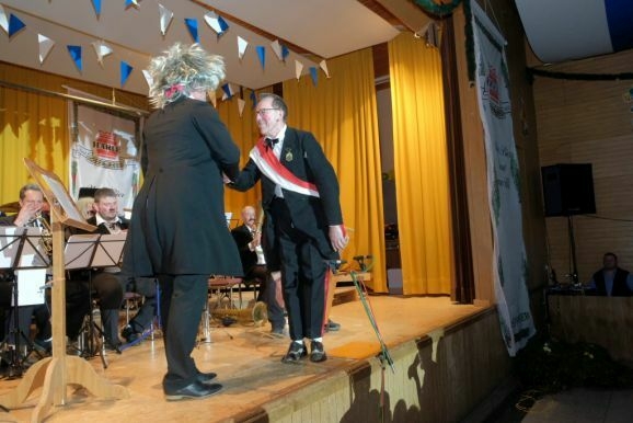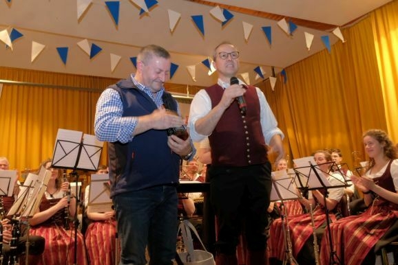 Wolfgang Grösser bedankte sich an diesem Abend auch bei seinen zahlreichen Helfern in Küche und Service, teilweise aktive Musiker, teilweise auch Jungmusikanten, ganz besonders ehrte er Freddy Holzmüller, der seit vielen Jahren für den richtigen Ton beim Bockbierfest sorgt.