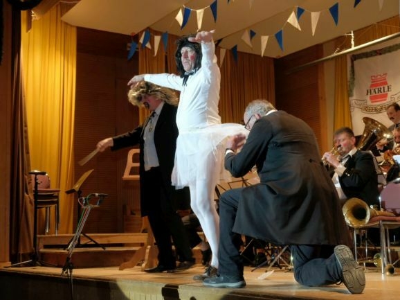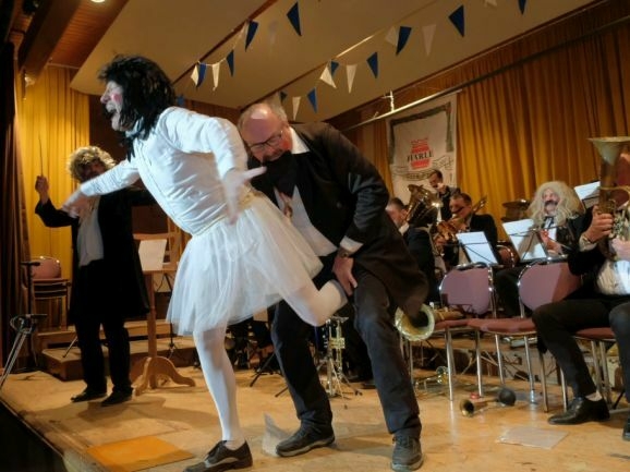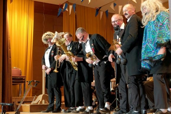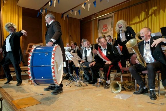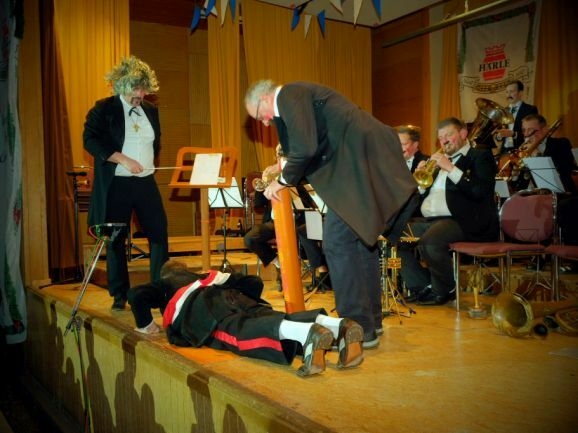 Das große Highlight war jedoch der Auftritt der legendären „Dilldapper-Vielharmoniker“ , die nachdem sie einige Jahre in der Versenkung verschwunden waren nun wieder aufgetaucht sind. Was – aus ernährungstechnischer Sicht gar nicht so einfach war – wie „Zirkusdirektor“ Wolfgang Grösser vor dem Comeback-Auftritt erklärte. Denn weil auch die Dilldappen älter geworden sind, mussten wir die Schweinshaxen für sie pürieren.“ Und statt im Hotel Rössle nächtigen die Herrschaften im FeelMoor, „weil die da einen Rollator-geeigneten Aufzug haben.“