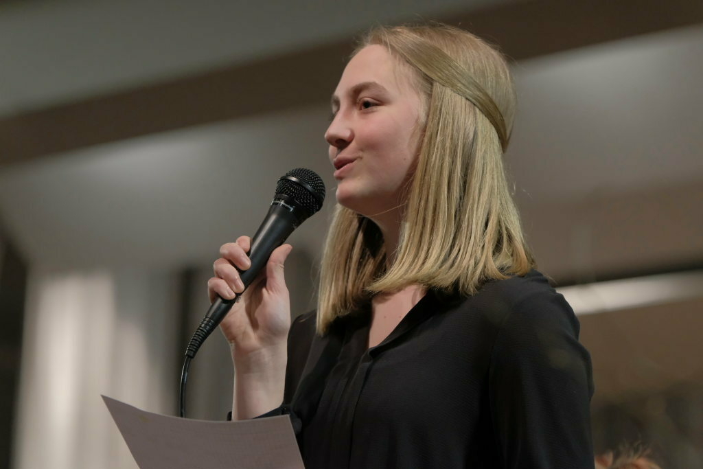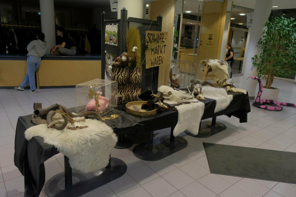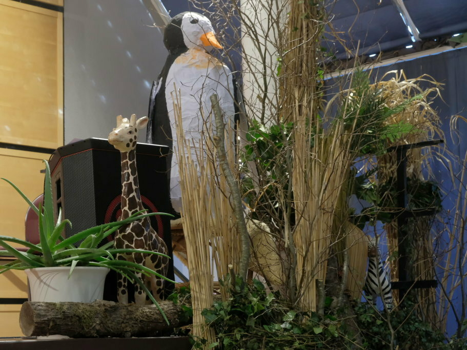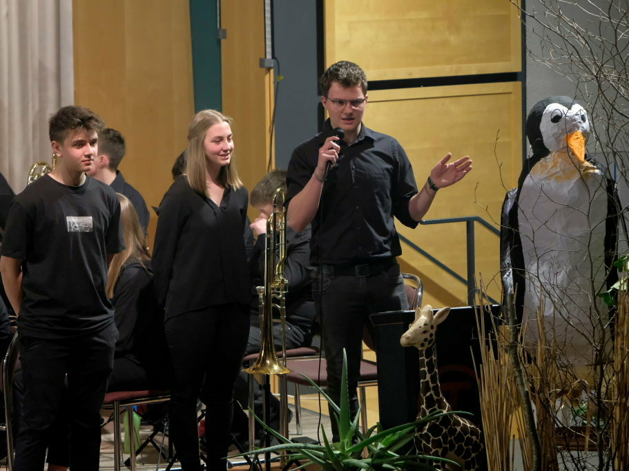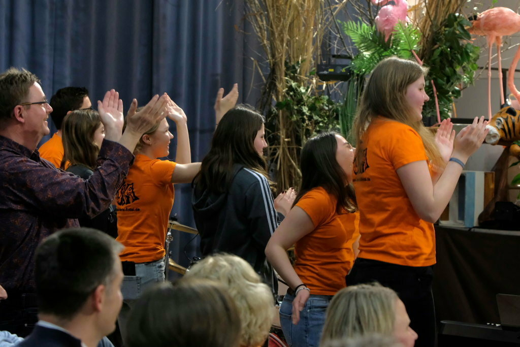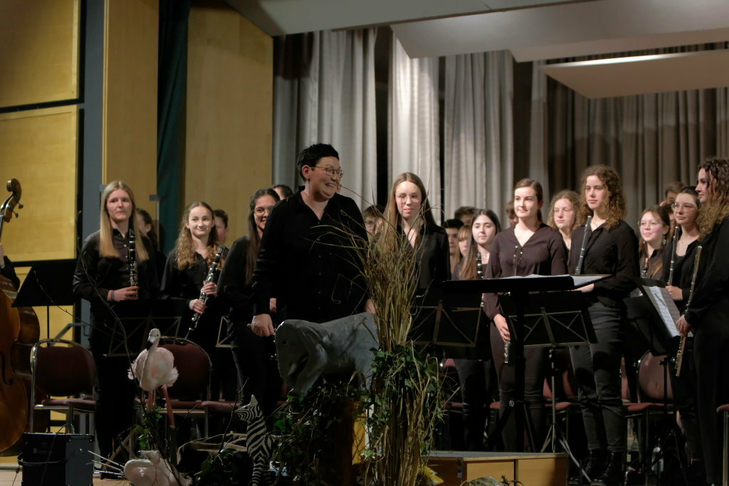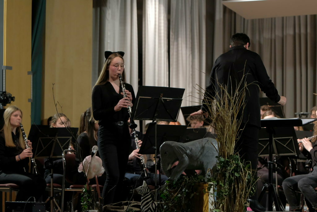 Denn wie die Besucher beim Einritt ins Foyer sofort sahen, ging es ihnen nicht nur um die musikalische Präsentation der Musik, nicht nur um die eigenständigen Organisation des Konzertes. Die über 70 Jugendlichen hatten ein Gesamtkonzept mit den einzelnen Stücke verbindenden Texten entwickelt, um ihr großes Anliegen – den Schutz von Wildtieren vor Wilderei und Vermarktung auf dem Schwarzmarkt – mit einem gewissen Tiefgang zu präsentieren.