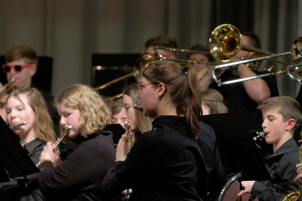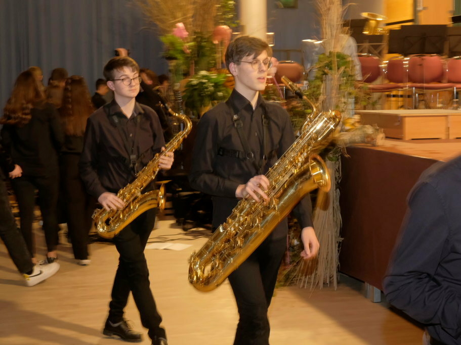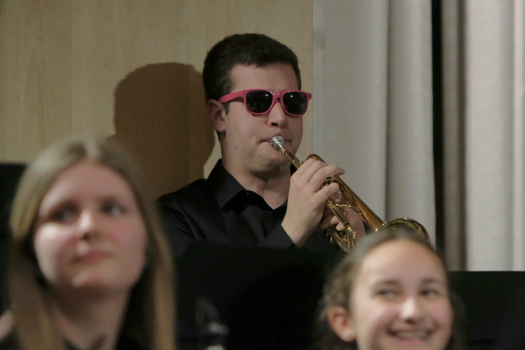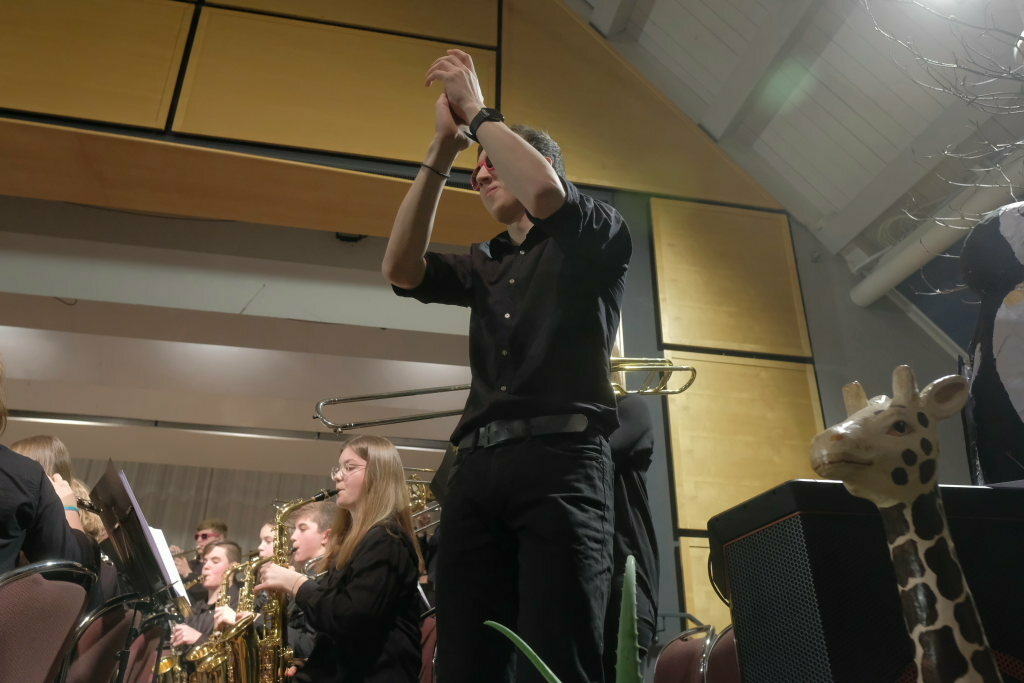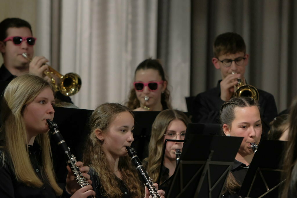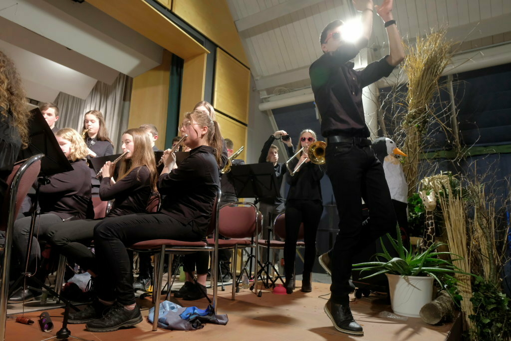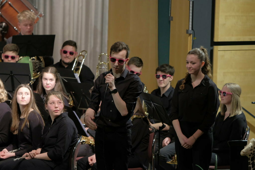 Mit dem Medley aus „The greatest Showman im Arrangement“ von Philip Sparke waren noch einmal sämtliche Register gefordert. Insbesondere das Schlagzeugregister legte dabei ein richtig tolles Solo hin – wohlgemerkt improvisiert – wie Orga-Chef Leon Grösser erklärte.