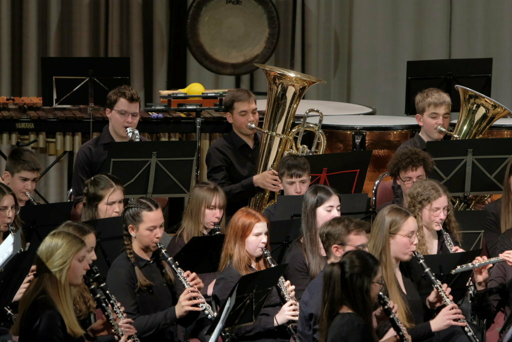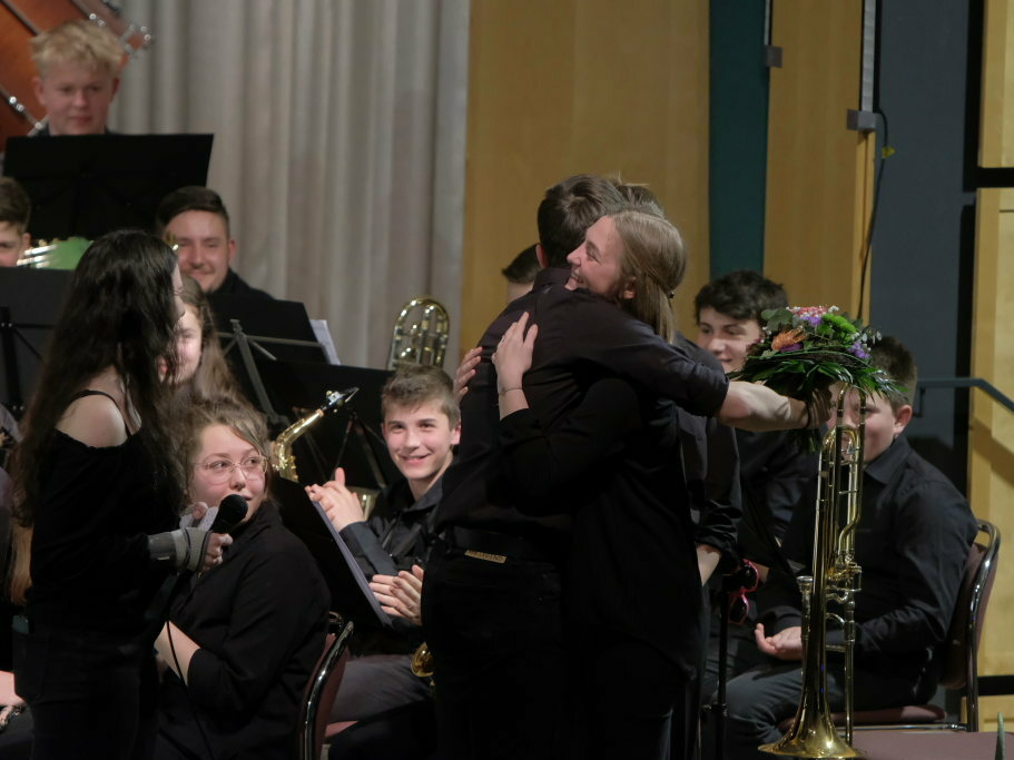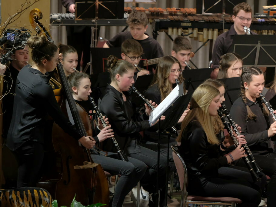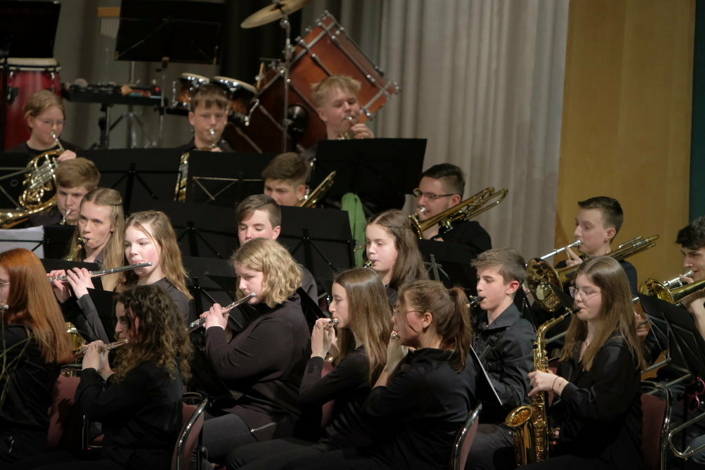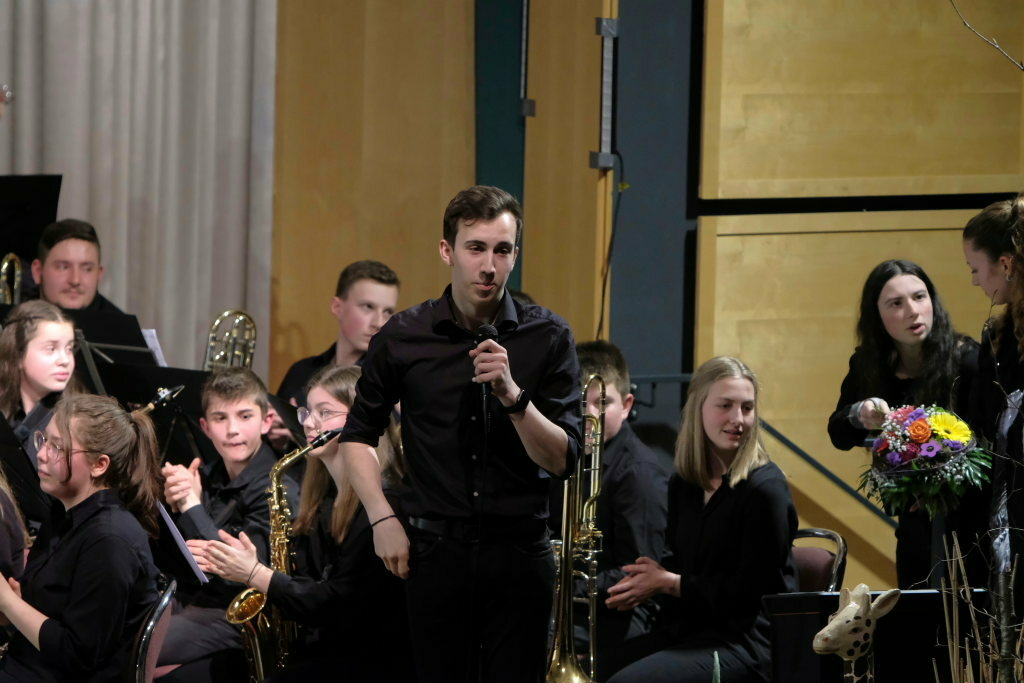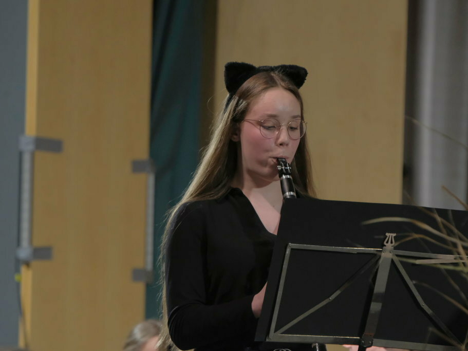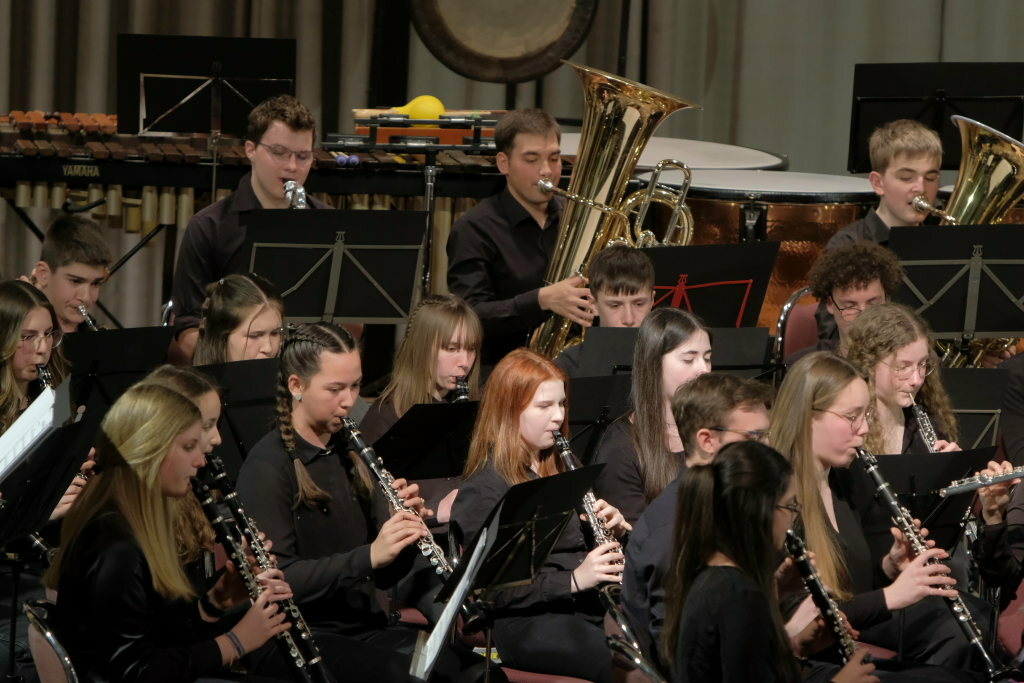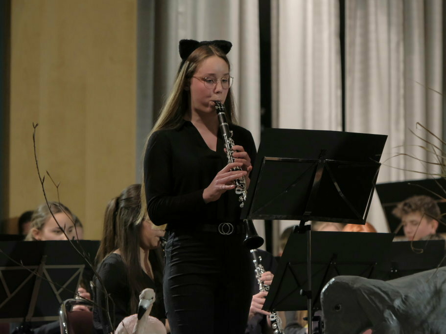 Mit dem Medley aus „The greatest Showman im Arrangement“ von Philip Sparke waren noch einmal sämtliche Register gefordert. Insbesondere das Schlagzeugregister legte dabei ein richtig tolles Solo hin – wohlgemerkt improvisiert – wie Orga-Chef Leon Grösser erklärte.