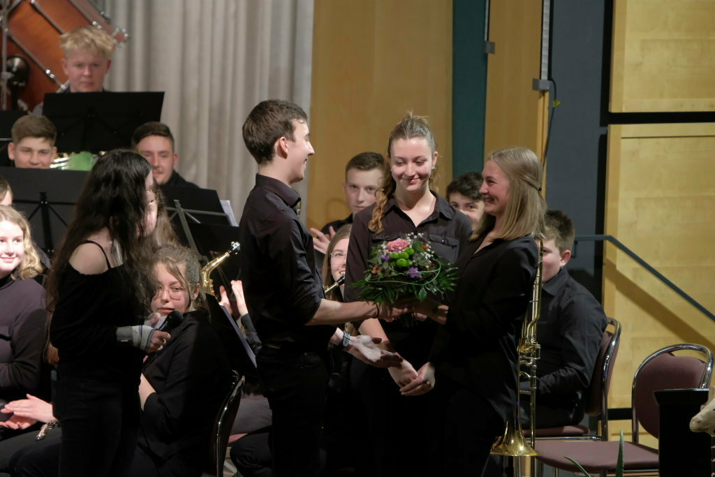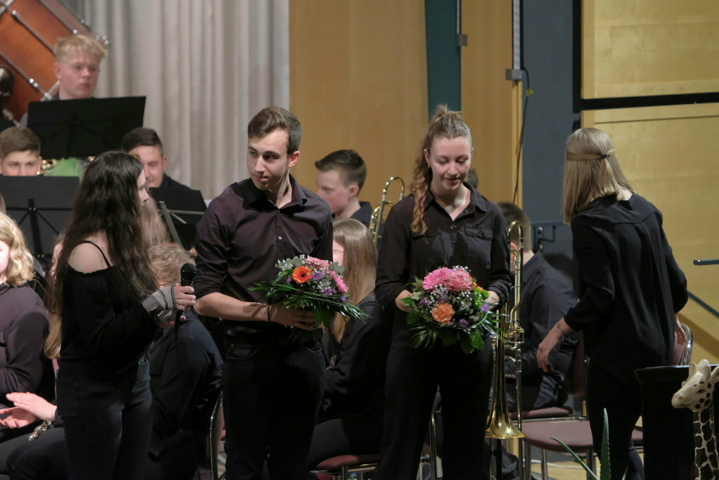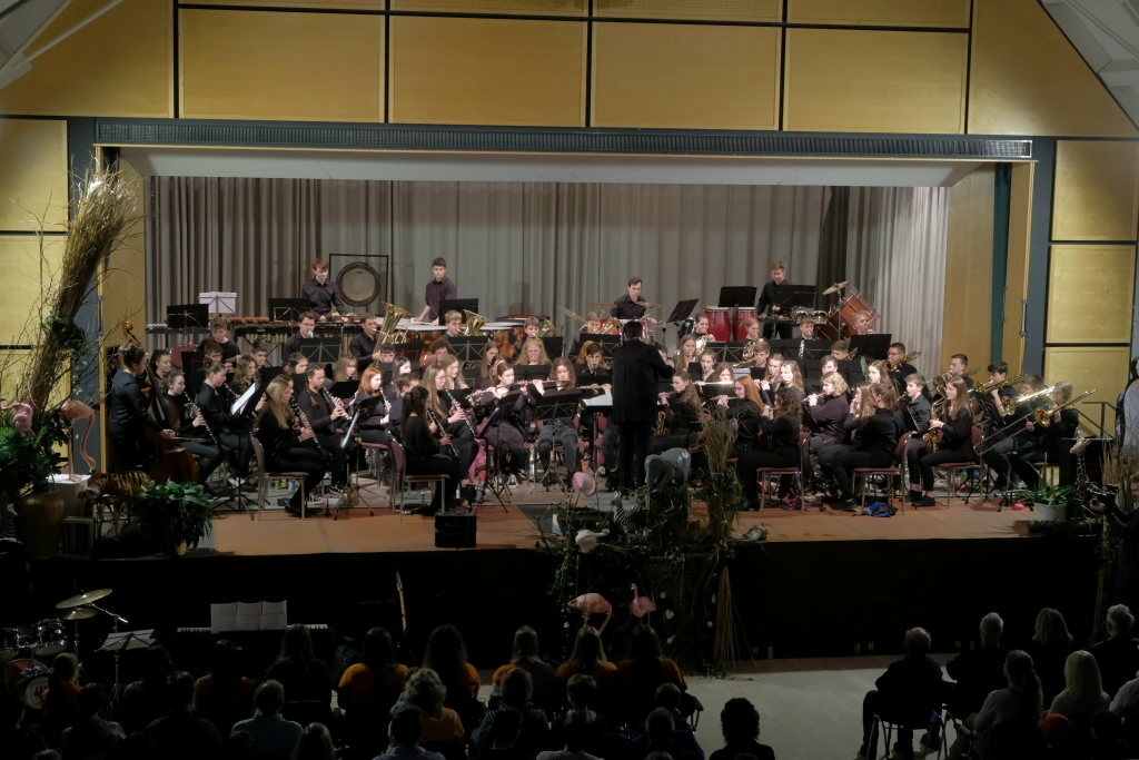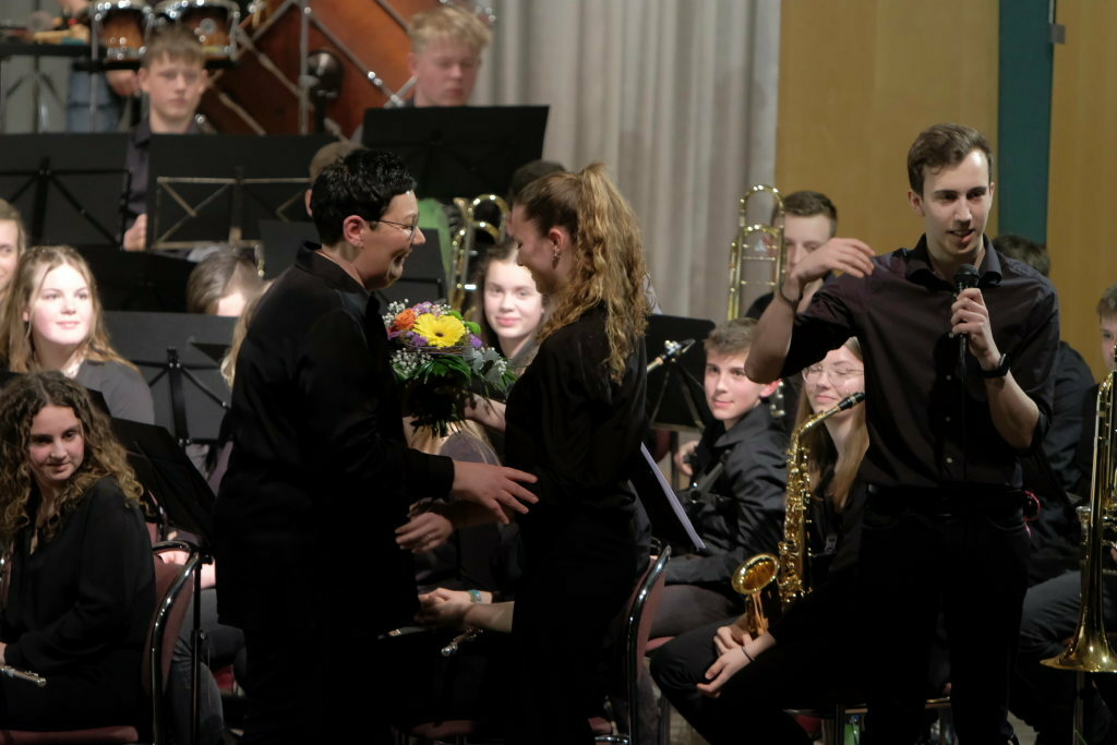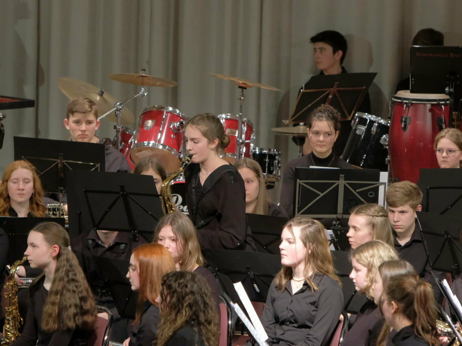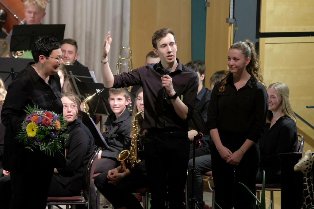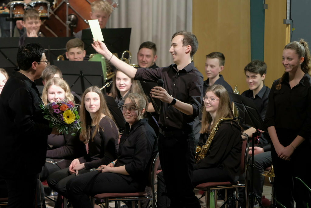 Mit dem Medley aus „The greatest Showman im Arrangement“ von Philip Sparke waren noch einmal sämtliche Register gefordert. Insbesondere das Schlagzeugregister legte dabei ein richtig tolles Solo hin – wohlgemerkt improvisiert – wie Orga-Chef Leon Grösser erklärte.