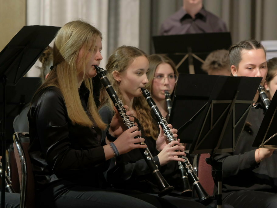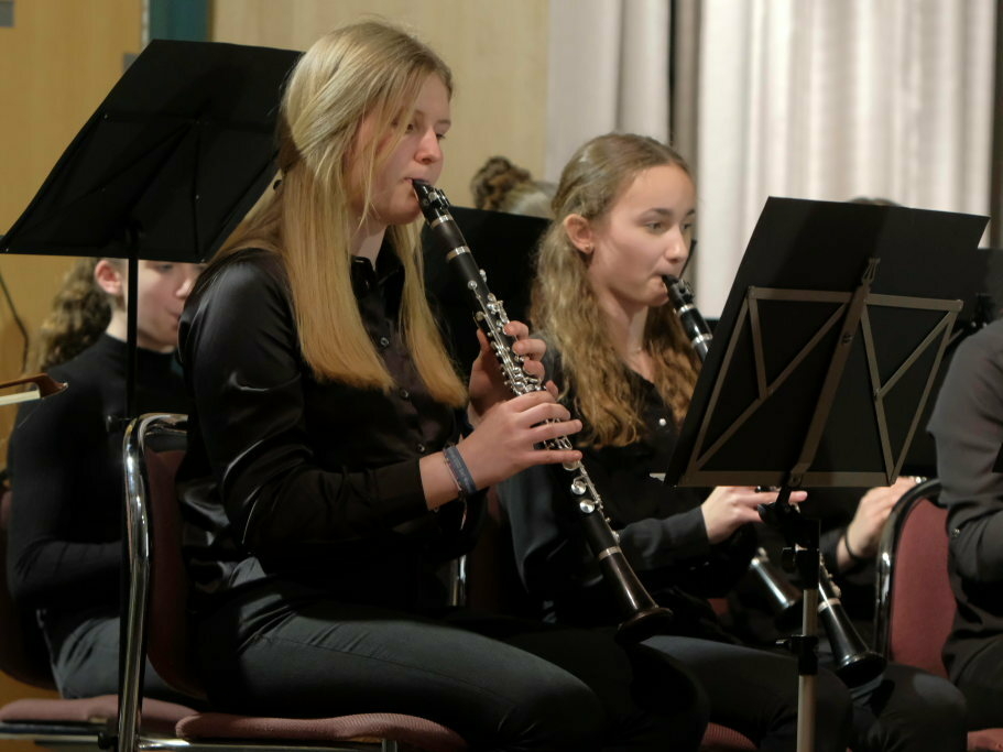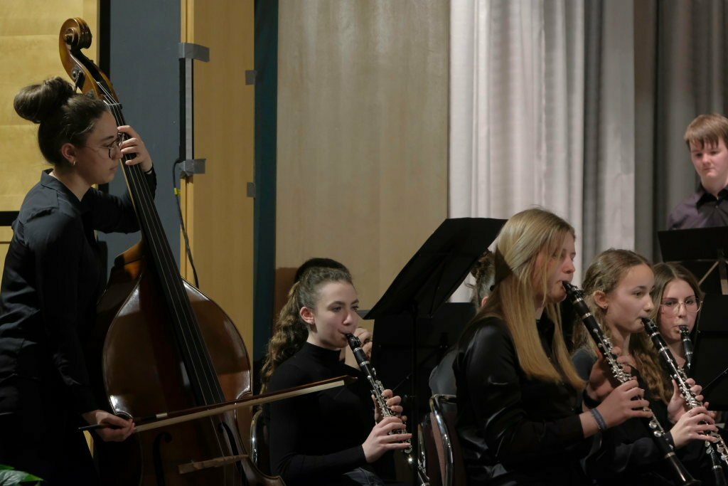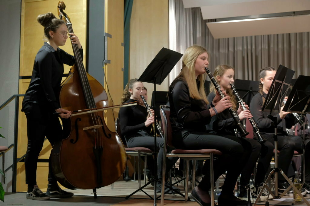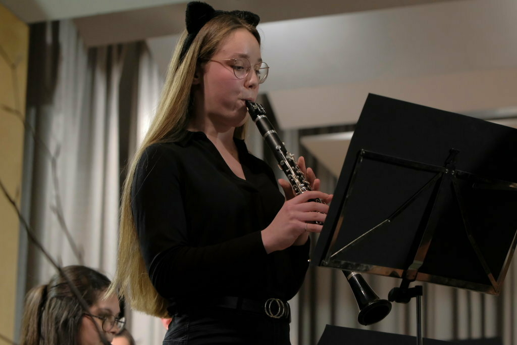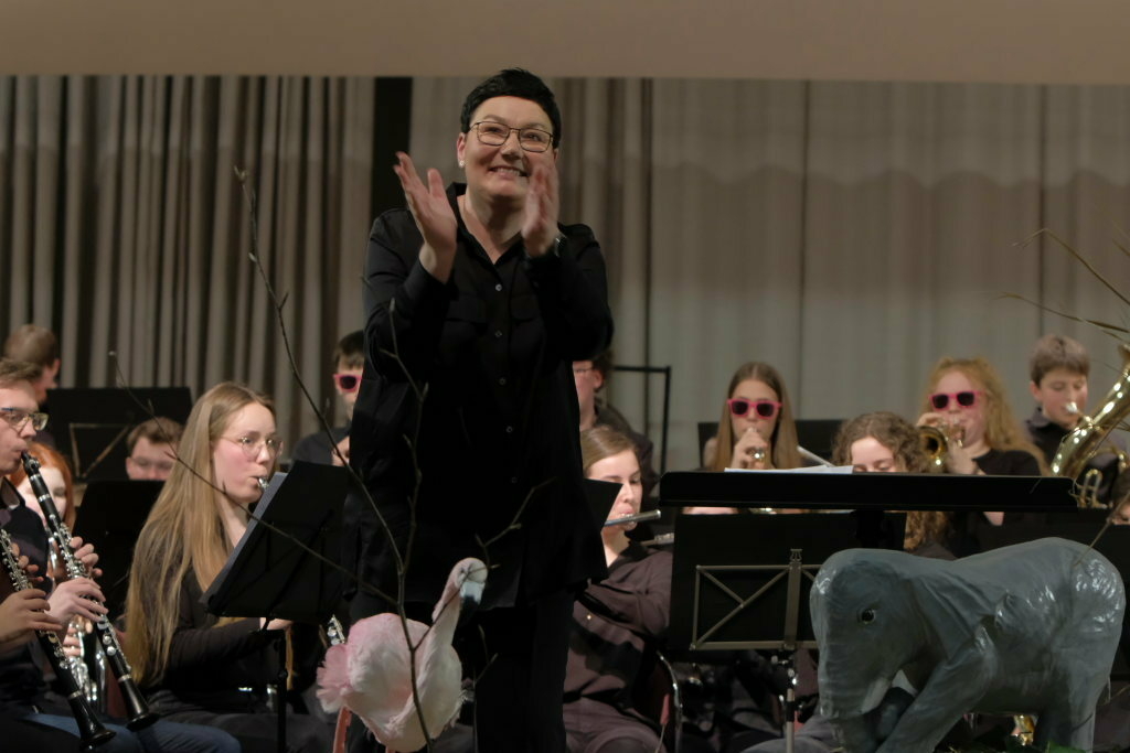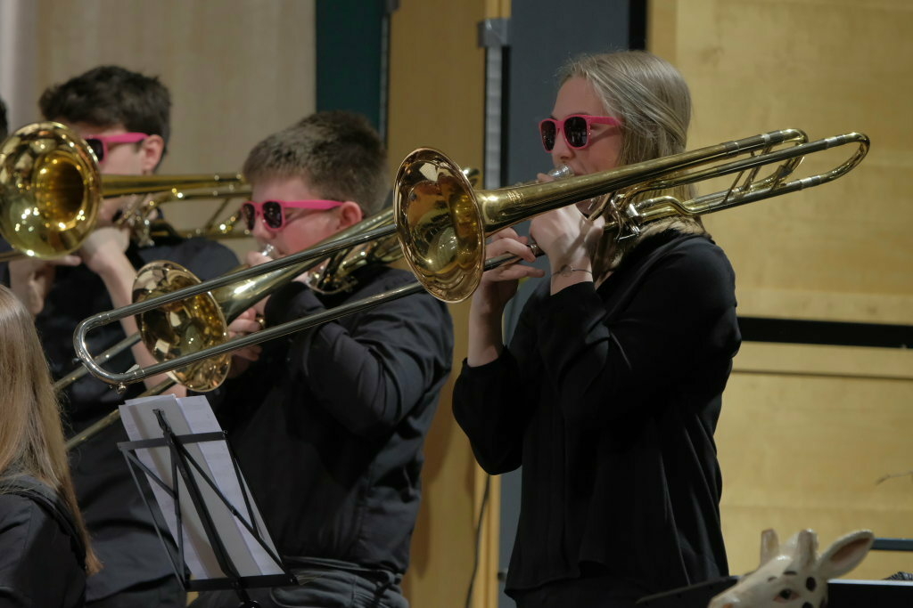 Mit dem Medley aus „The greatest Showman im Arrangement“ von Philip Sparke waren noch einmal sämtliche Register gefordert. Insbesondere das Schlagzeugregister legte dabei ein richtig tolles Solo hin – wohlgemerkt improvisiert – wie Orga-Chef Leon Grösser erklärte.