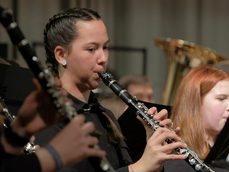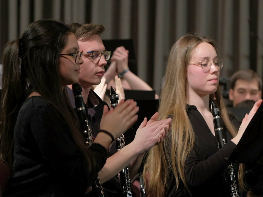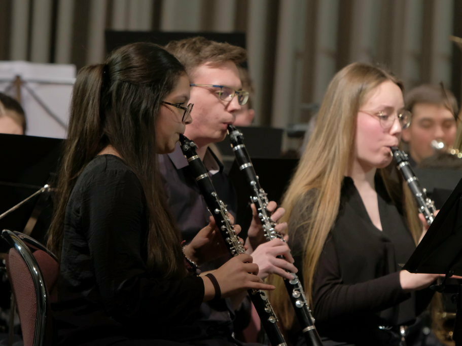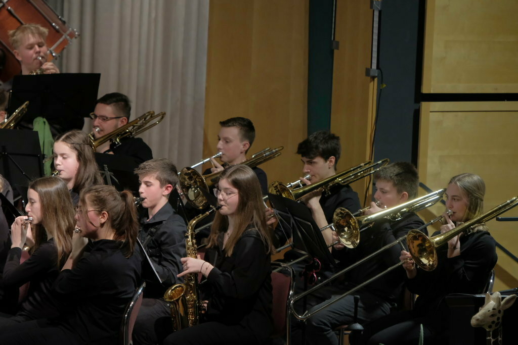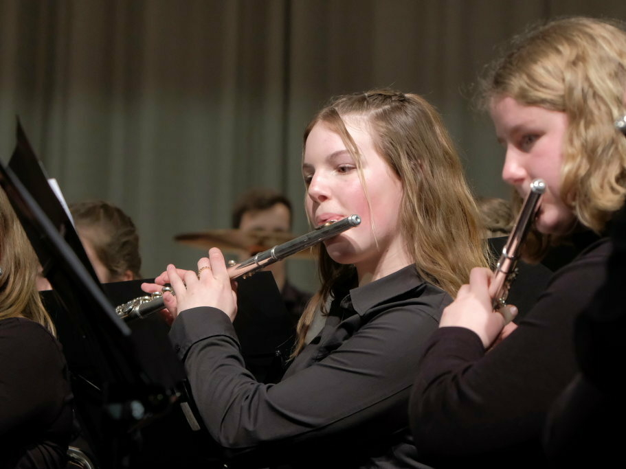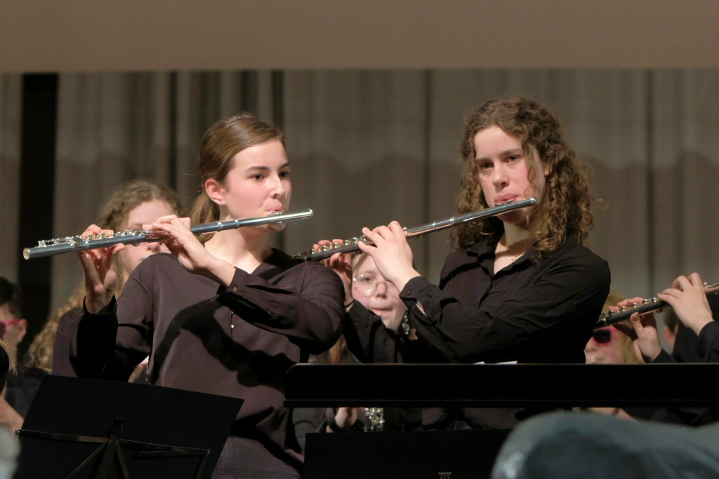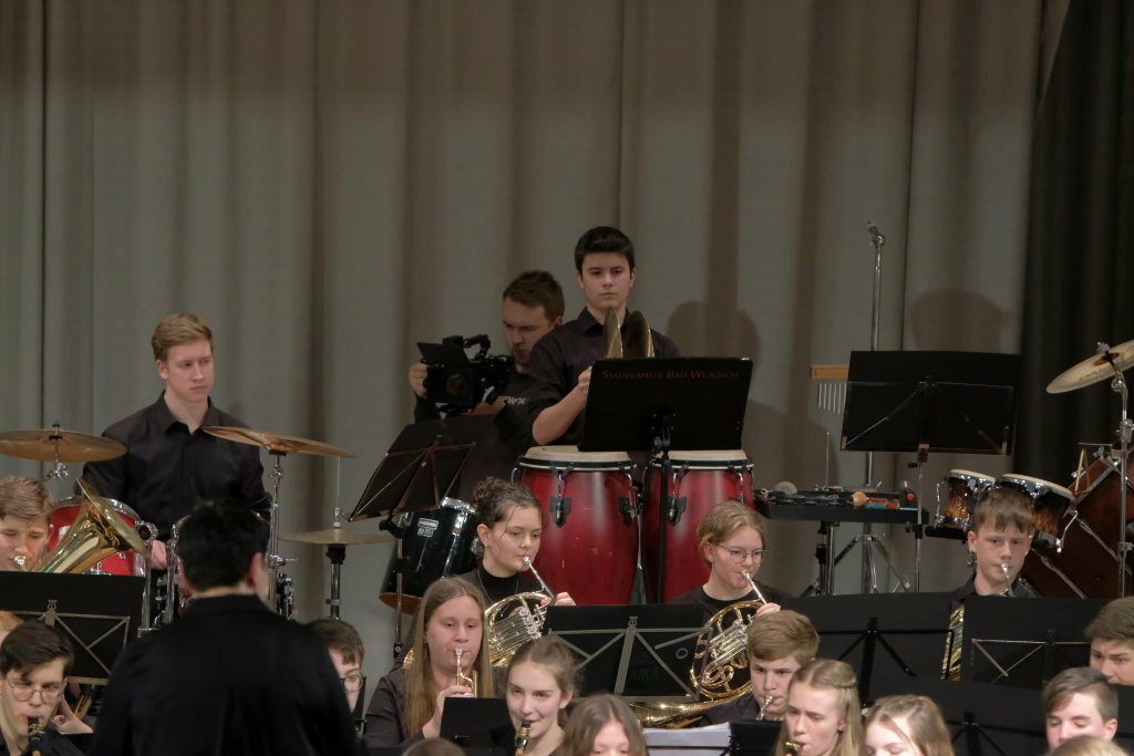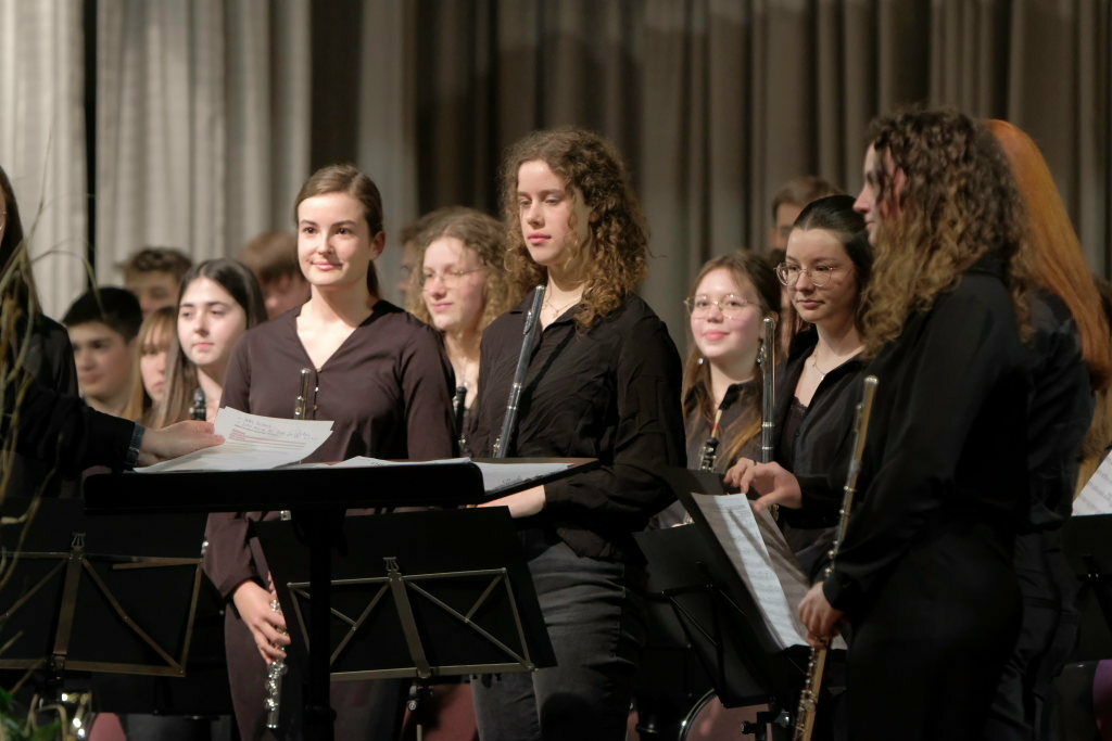 Mit dem Medley aus „The greatest Showman im Arrangement“ von Philip Sparke waren noch einmal sämtliche Register gefordert. Insbesondere das Schlagzeugregister legte dabei ein richtig tolles Solo hin – wohlgemerkt improvisiert – wie Orga-Chef Leon Grösser erklärte.
