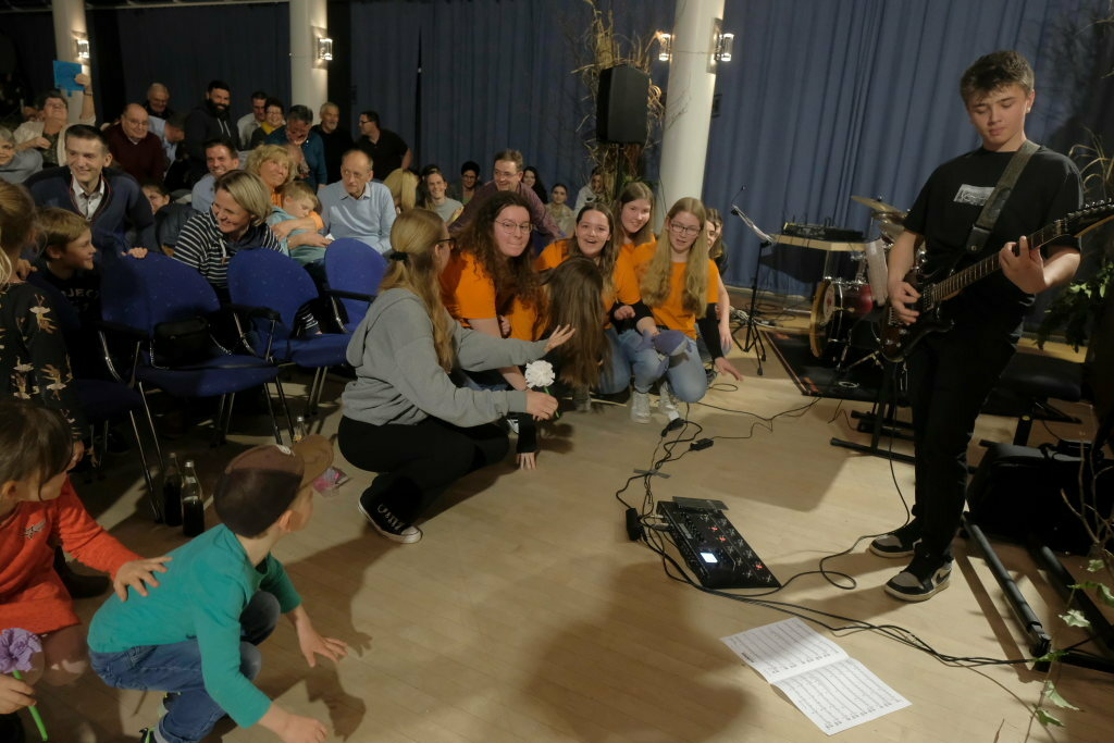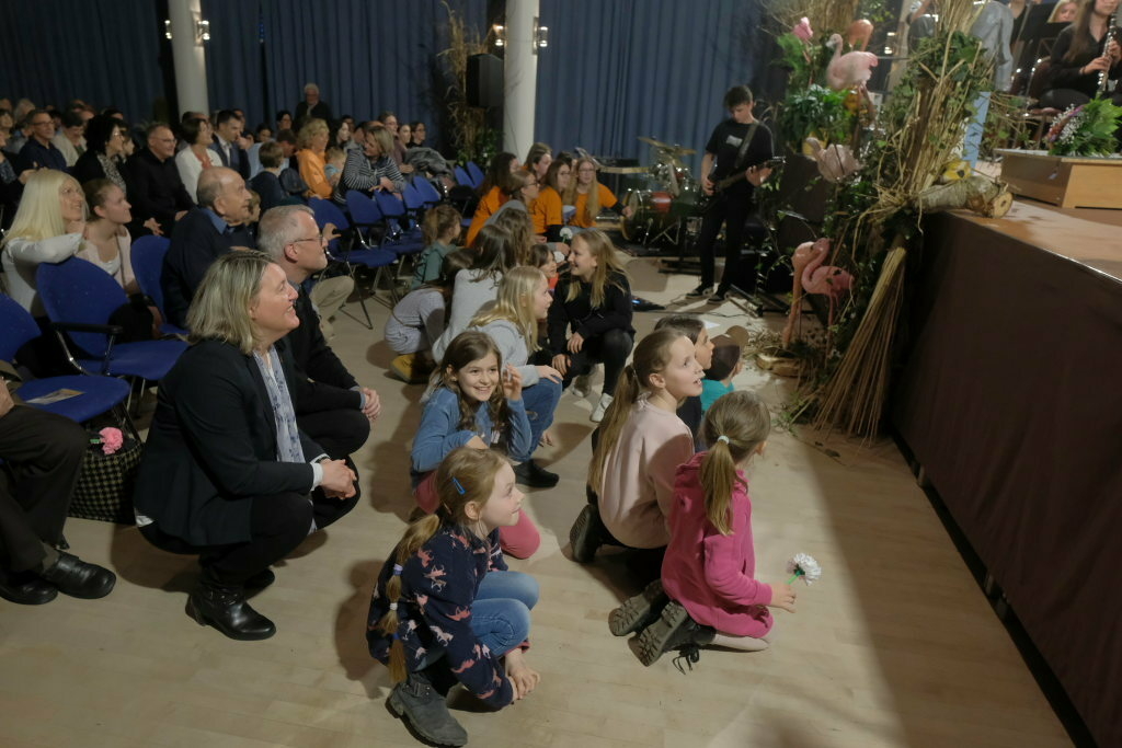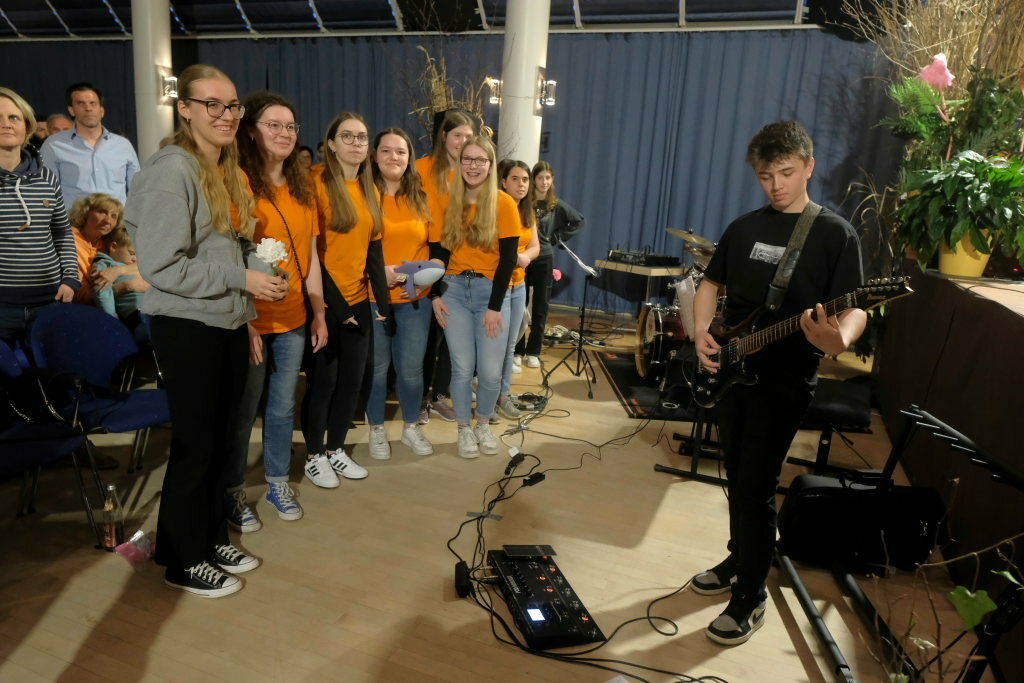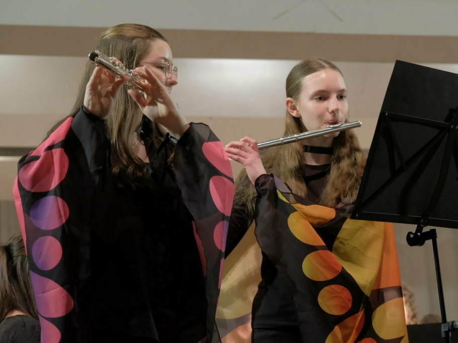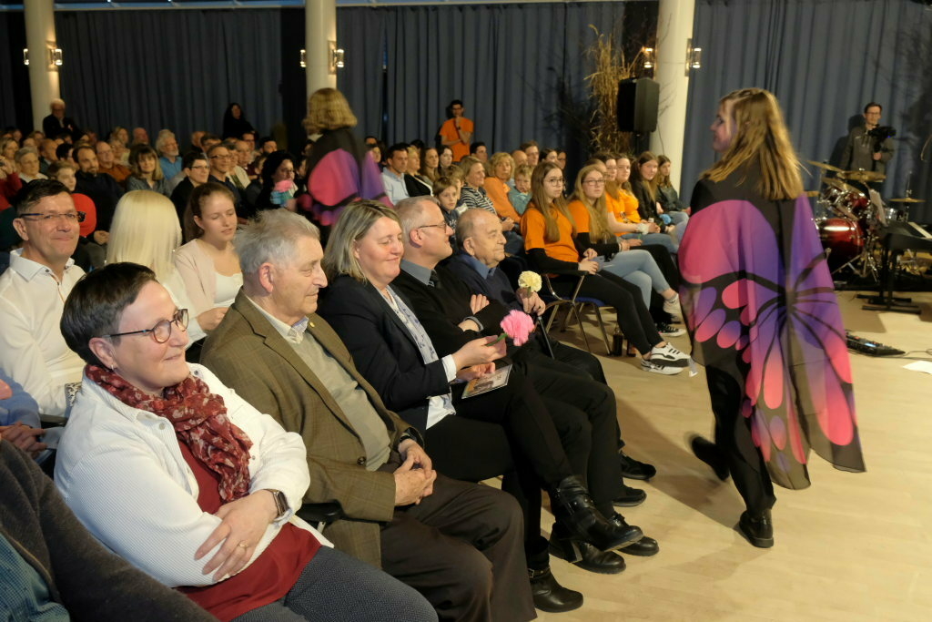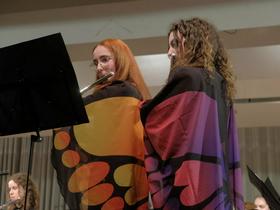 Ein Flöten-Quartett konnte sich bei den Happy Flutes von Joseph Robert Eastman auszeichnen, während „Schmetterlinge“ durch den Saal flatterten und Blumen verteilten.
