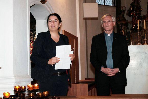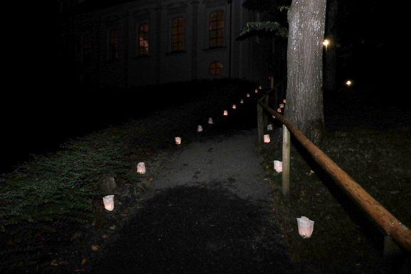 Dabei spiele es keine Rolle, ob es sich bei ihr tatsächlich um ein mit dem Blut Jesu getränktes Stück Stoff handele. „Die Reliquie kann Erinnerung wachrufen, kann Wegweiser sein.“ 1500 Reiter, 2000 - 3000 Pilger hofften alljährlich auf den Segen der Heilig-Blut-Reliquie. Mit Musik von Bach, Händel und Christoph Pampuch versetzten die Musikerinnen die Herzen der Zuhörer gemeinsam mit den beiden Rezitatoren in positive Schwingungen, zum Ohrenschmaus kam nach der Veranstaltung noch der optische Genuss, denn der Weg hinab zum Parkplatz war von farbigen Lampions gesäumt....