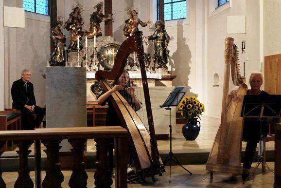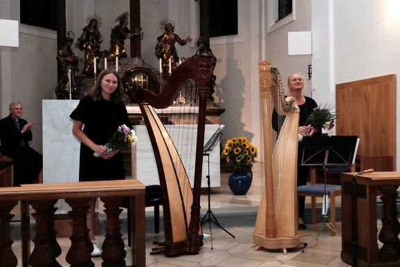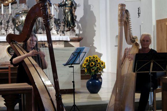 Die Bad Wurzach Info als örtlicher Veranstalter setzte dabei auf einen mystisch-besinnlichen, experimentellen Weg. Die Harfe, eines der ältesten Musikinstrumente der Menschheit, gewinnt in den letzten Jahren im Konzertbetreib wieder deutlich an Bedeutung. Da lag es nahe, den musikalischen Part der diesjährigen Barocknacht von einem Konzertharfen-Duo bestreiten zu lassen.