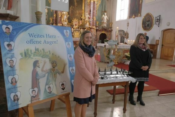 Nach Begrüßung und Kyrie, welche die Kinder aktiv mitgestalteten wurde zum Gloria mit dem Lied „Bravo Bavissimo“ die ganze Kirchengemeinde „aktiviert“. „Offene Augen, weites Herz“ ist das Mottolied der diesjährigen Kommunionfeier, in dem auch die Geschichte des blinden Bettlers Barthimäus thematisiert wird.