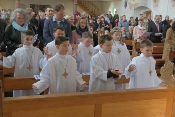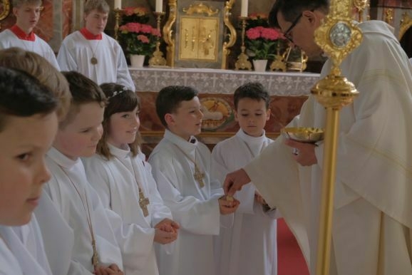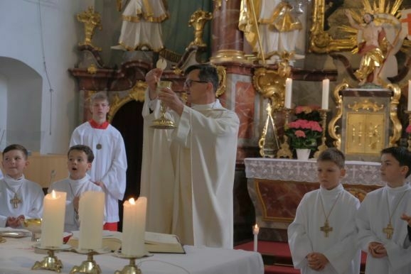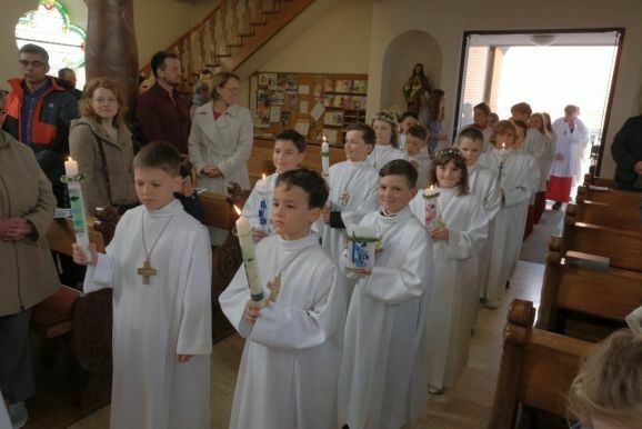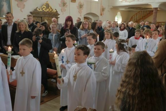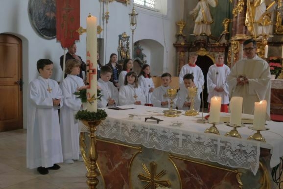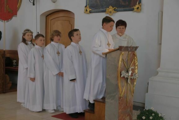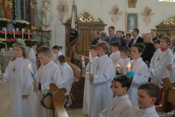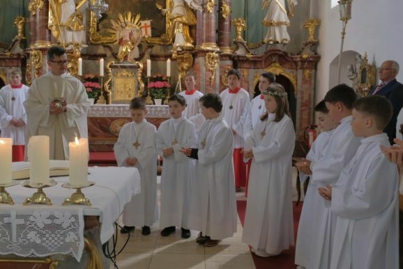 Nun könne man Jesus nicht mehr von Angesicht zu Angesicht gegenüber stehen, bei der Feier der Eucharistie verwandelten sich das heilige Brot und der Wein in den Leib und das Blut Christi. Pater Mariusz wünschte den Kindern, dass ihnen der Empfang der Heiligen Kommunion Mut mache und sie den Leib Christi mit reinem Herzen empfingen.