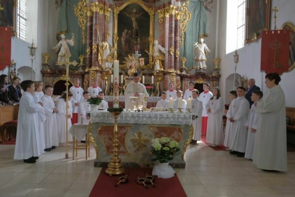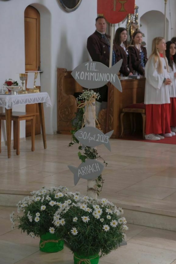 Arnach - Die diesjährige Erstkommunion in Arnach stand unter dem Leitwort „Weites Herz offene Augen“. Nach einer langen Vorbereitungszeit mit Gemeindereferentin Angelika Schupp und Pastoralreferent Michael Maier durften die 13 Kinder in einem von Pater Mariusz Kowalski zelebrierten Festgottesdienst in St. Ulrich und Margaretha erstmals die Heilige Kommunion empfangen.