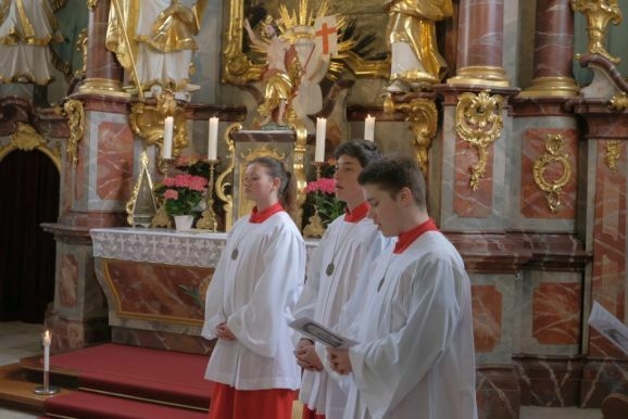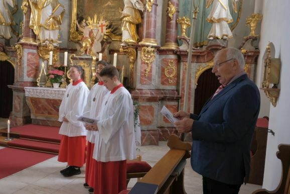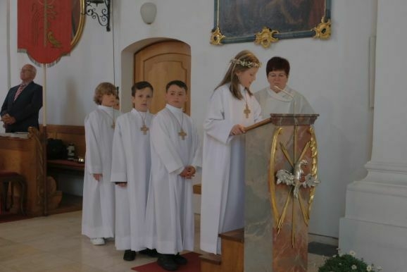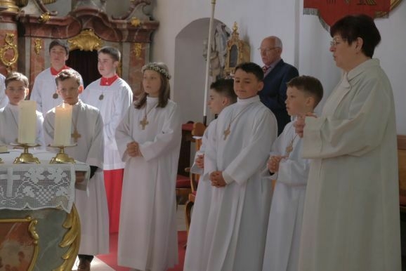 Angelika Schupp sprach nach der Kommunion allen an der Vorbereitung und Durchführung des Festgottesdienst beteiligten ihren Dank aus. Den Eltern die sich alle in irgendeiner Form eingebracht hatten, Pater Mariusz, den Ministranten, dem Kirchenchor unter der Leitung von Wolfgang Roth, der Musikkapelle Arnach, Organist Matthias Tapper und Mesner Anton Baumann und natürlich den Kommunionkindern selbst.
