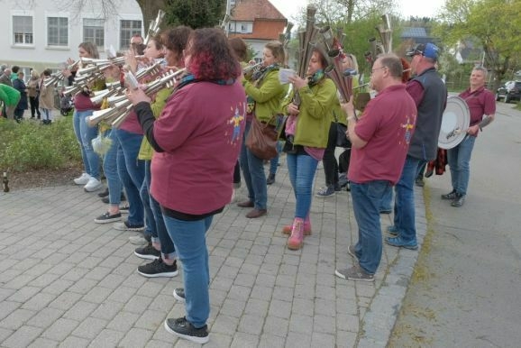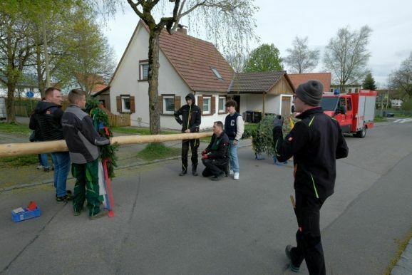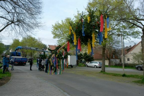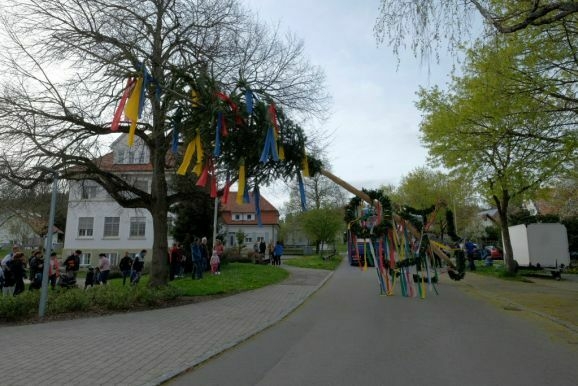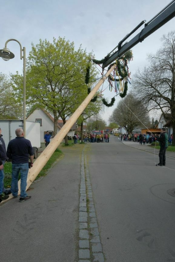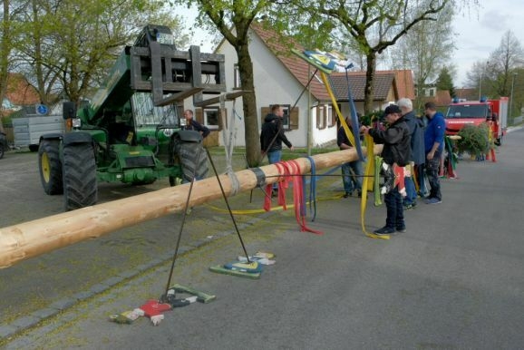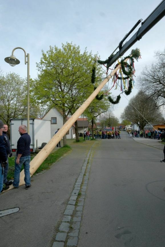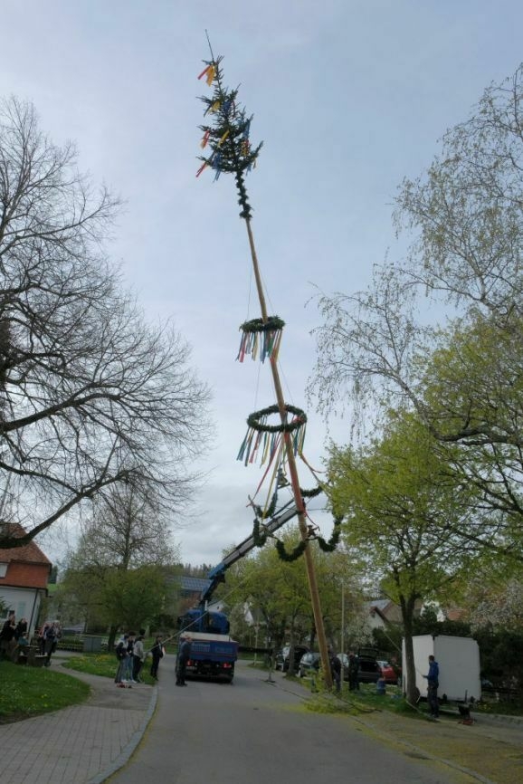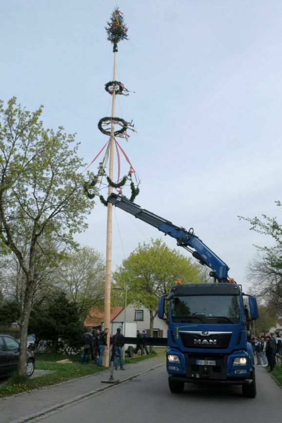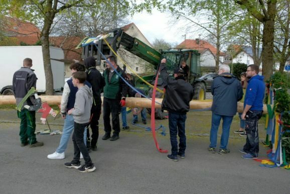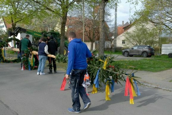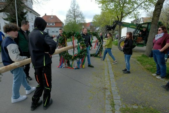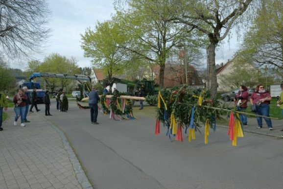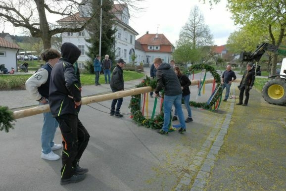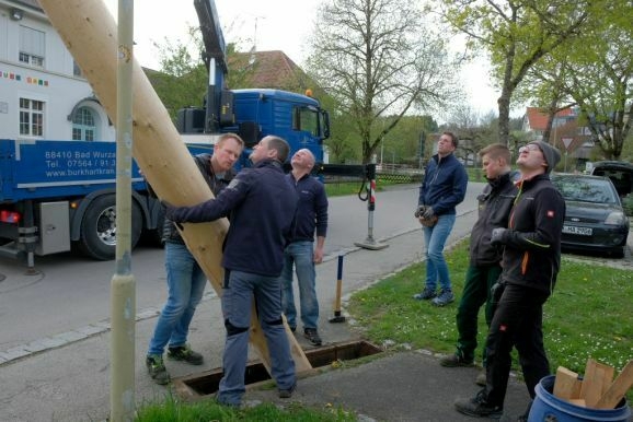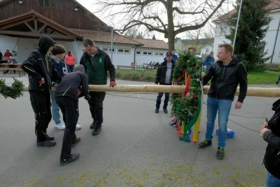 Haidgau - Wie an vielen anderen Orten in der Region wurden auch im Stadtgebiet von Bad Wurzach vor dem „Tag der Arbeit“, dem Feiertag am 01.Mai wieder zahlreiche Maibäume in der Ortsmitte aufgestellt, z.B. in Ziegelbach durch die Landjugend, in Gospoldshofen und Arnach von der Feuerwehr oder eben in Haidgau erstmals von der Vereinsgemeinschaft.