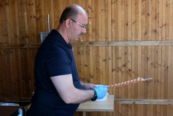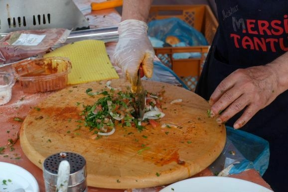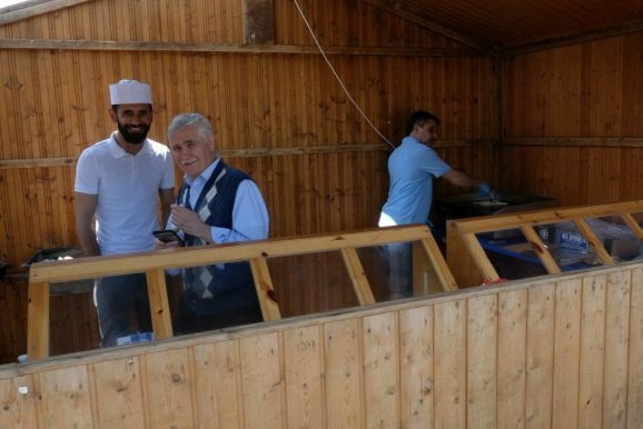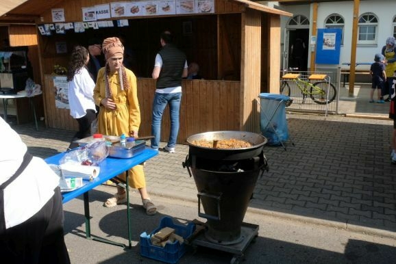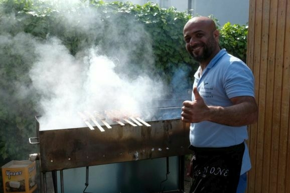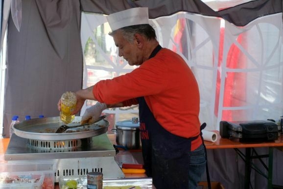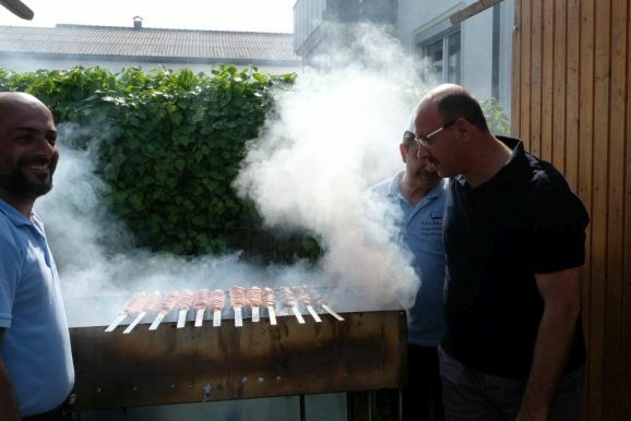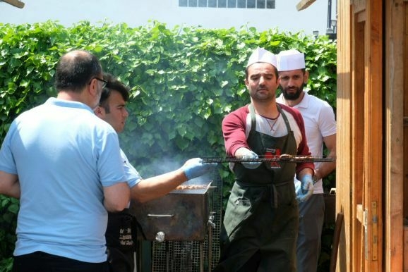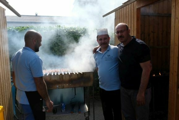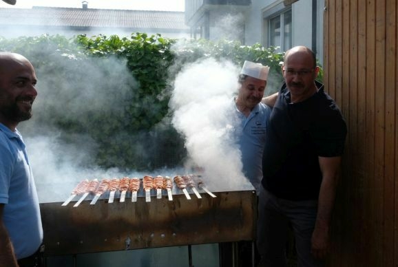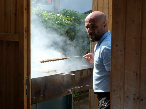 Etwa Tantum, ein Lamm-Gemüsegericht aus der Mittelmeerregion. Das Fleisch wird vorbereitet und auf dem Teller dann mit einer Kräuter-Gemüsemischung angerichtet. Dessen Zubereitung übernahm Mustafa Mersin, der in der Türkei 30 Jahre lang Übung mit dem Gericht hatte und nun als Ehrenamtlicher sein Können dem Verein zur Verfügung stellte. Am spektakulärsten war die Zubereitung von Adana Kebab-Spießen über dem offenen Feuer – weil es dort immer kräftig rauchte.