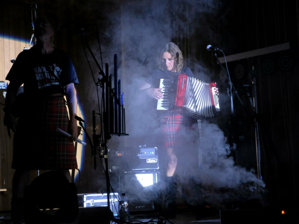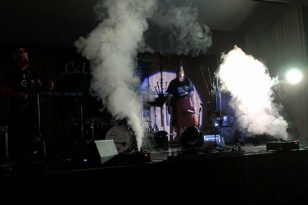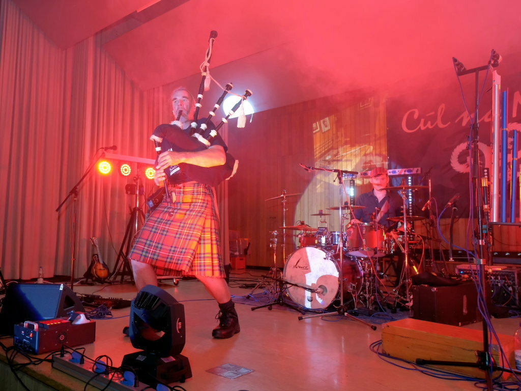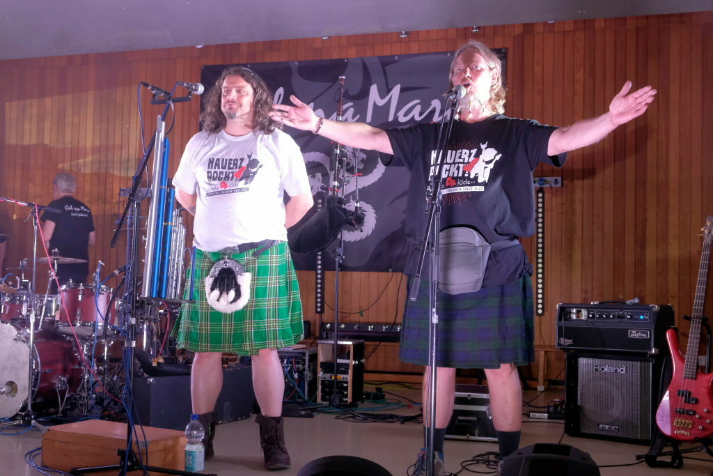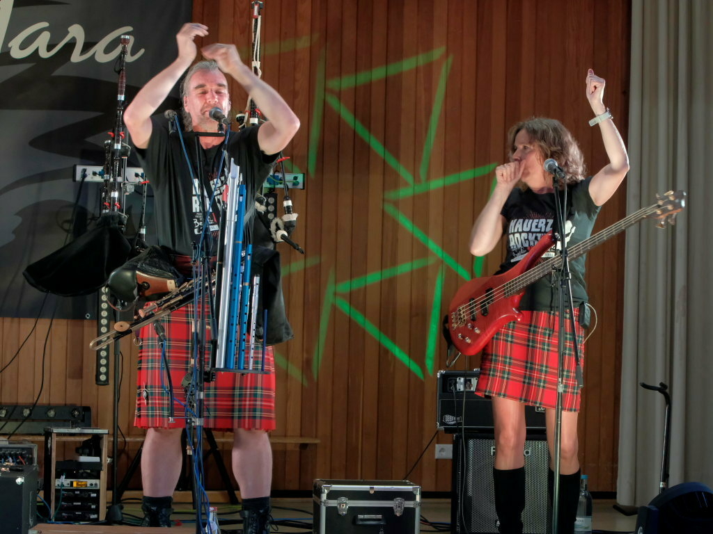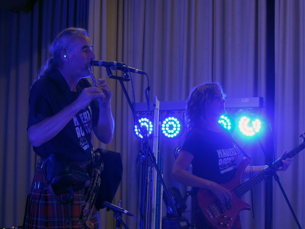 Hannes Ebner und der kreative Kopf des Vereines, Alexander „Alex“ Eisfeld ist von Beruf Grafikdesigner, waren an dem Abend für so manchen Scherz zu haben. Stilecht im Kilt gaben die Beiden dann vor der Pause eine kleine Kostprobe ihres musikalischen Talentes bei ihrer Soloperformance als „A-Capella Dudelsack Duo“.