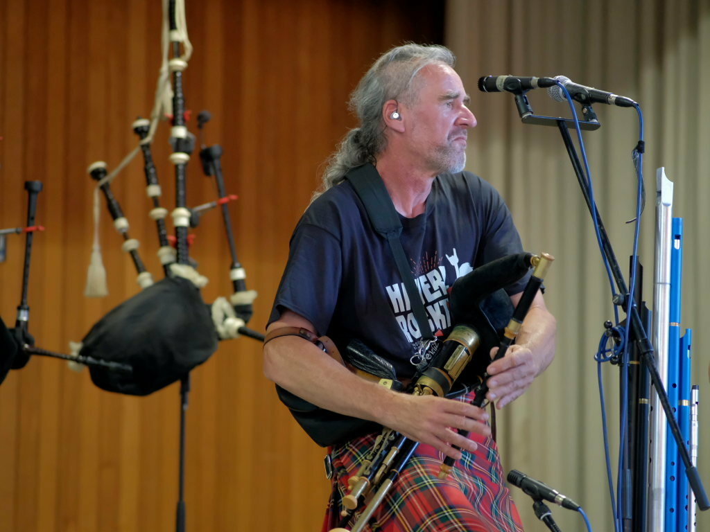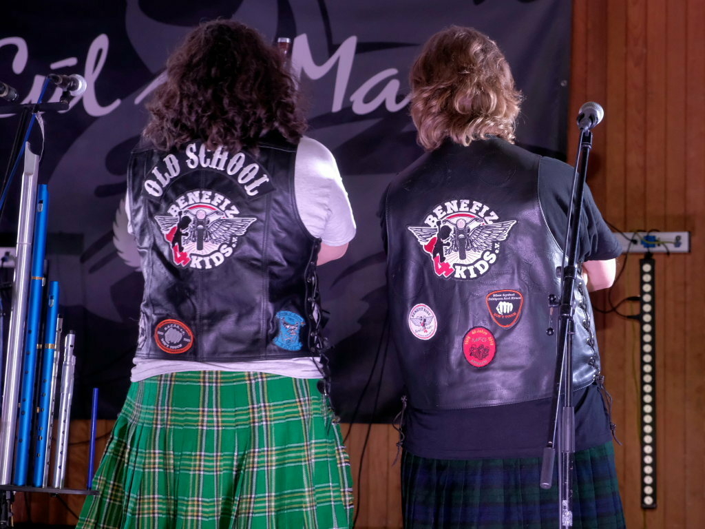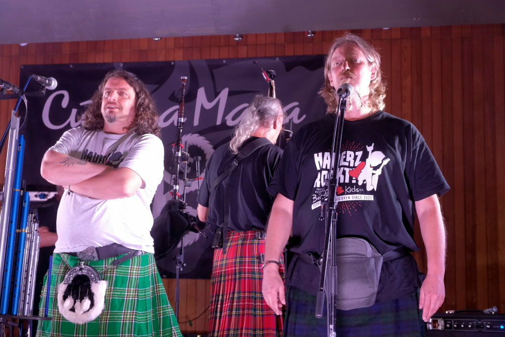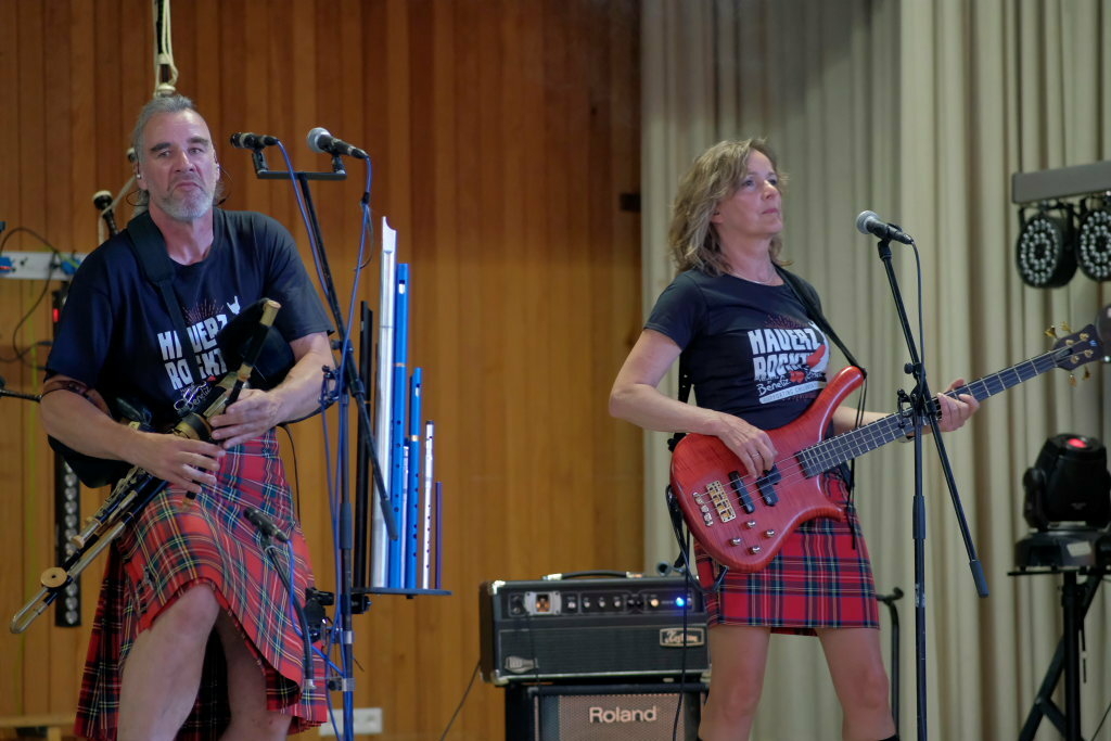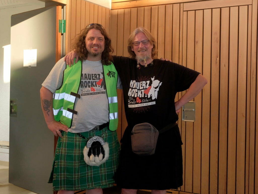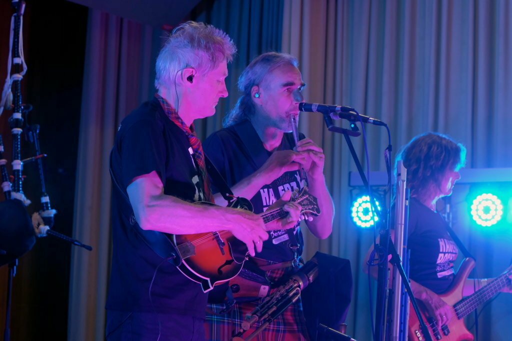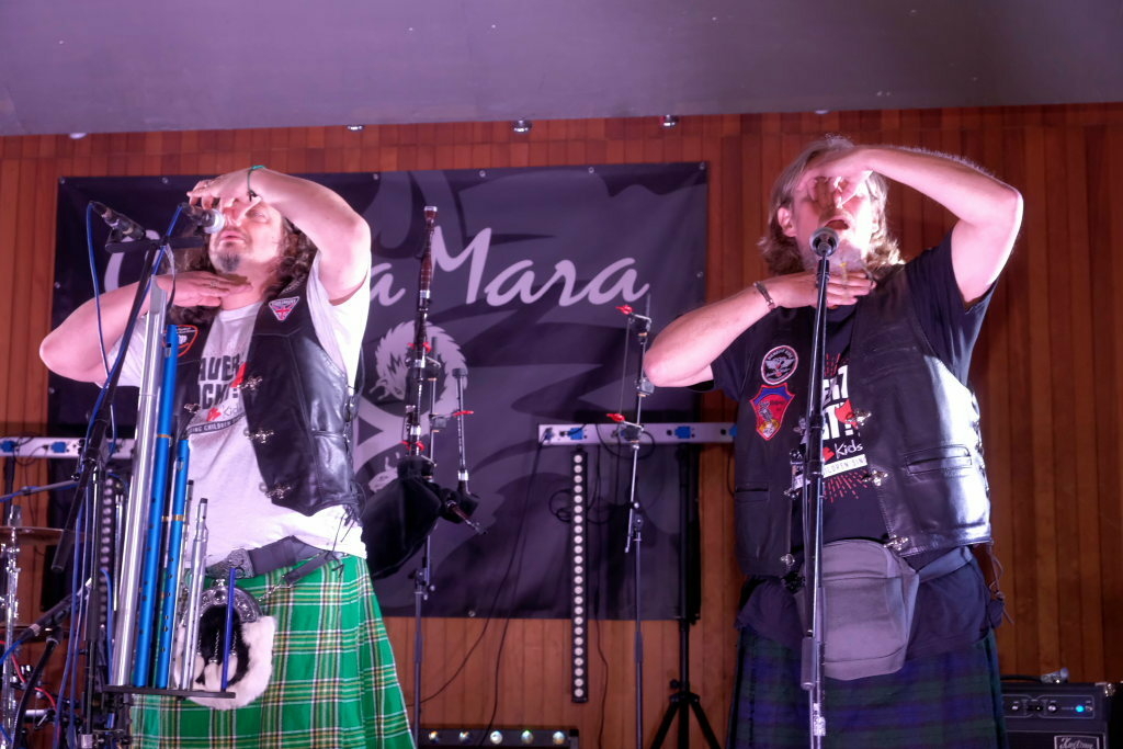 Hannes Ebner und der kreative Kopf des Vereines, Alexander „Alex“ Eisfeld ist von Beruf Grafikdesigner, waren an dem Abend für so manchen Scherz zu haben. Stilecht im Kilt gaben die Beiden dann vor der Pause eine kleine Kostprobe ihres musikalischen Talentes bei ihrer Soloperformance als „A-Capella Dudelsack Duo“.