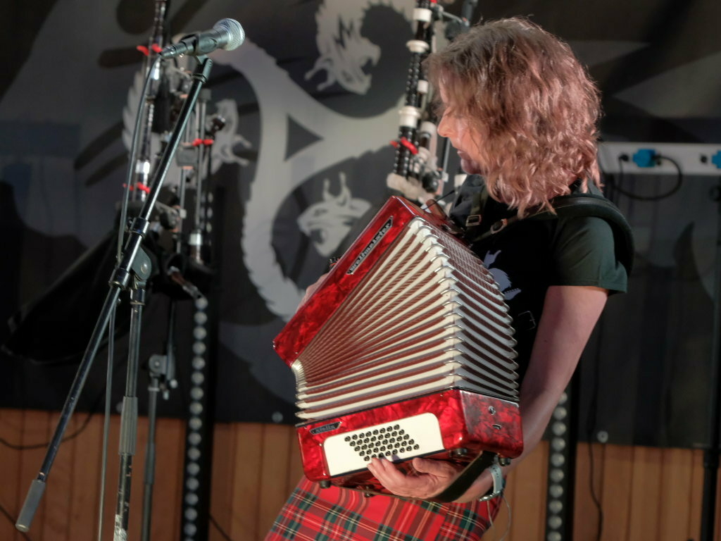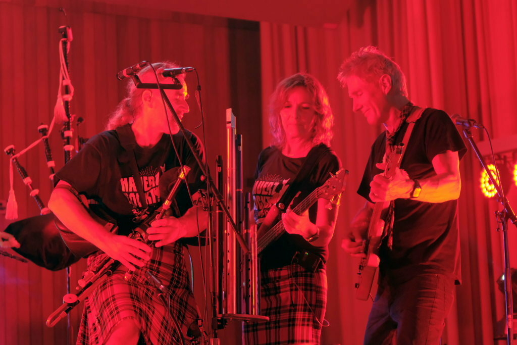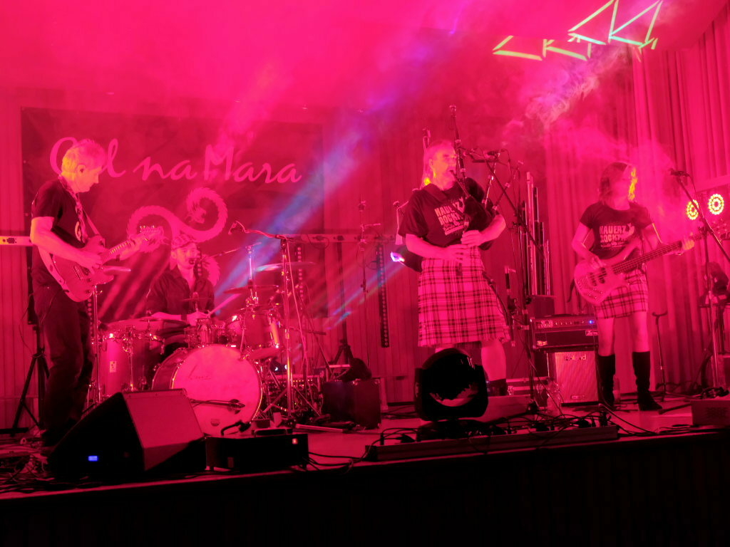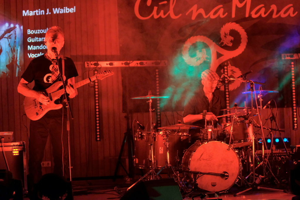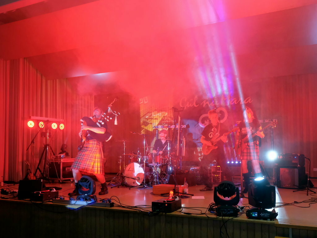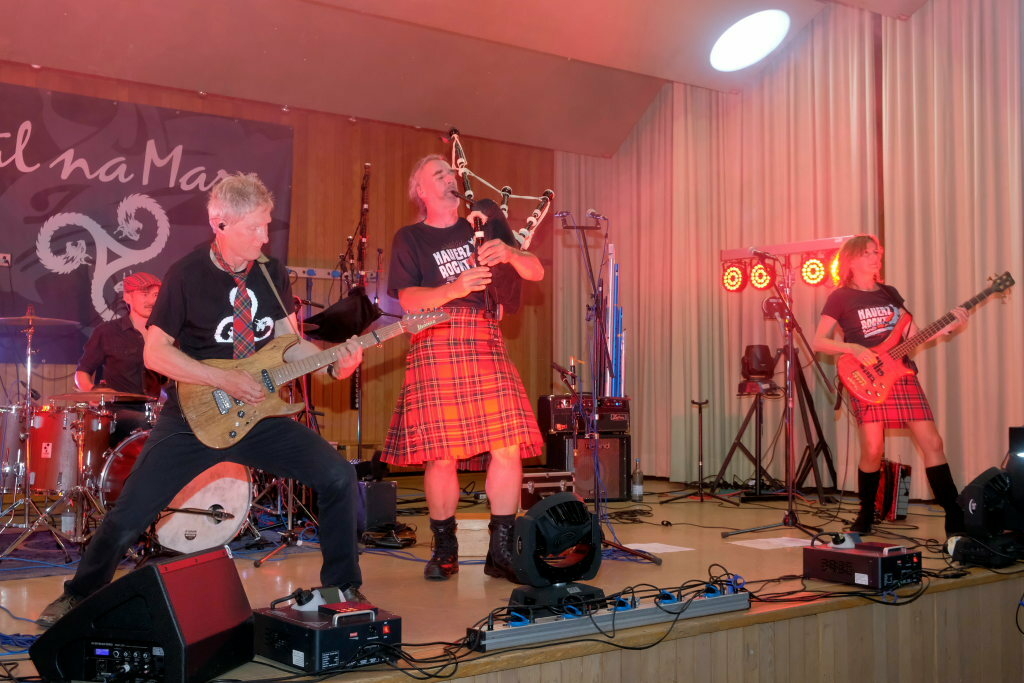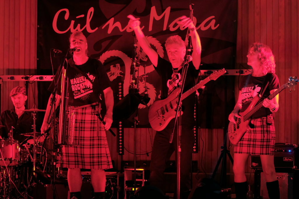 Cúl na Mara bespielt eine ungewöhnliche Bandbreite keltischer Musik. Ihr besonderer Reiz liegt dabei in der Kombination von traditionellen Instrumenten wie Highland-Pipe, Flöte, Akkordeon, Bouzouki und Mandoline mit der klassischen Rock-Besetzung aus Gitarre, E-Bass und Drums. Und dass die vier auch ein Faible für die australisch -schottischen Rock´n´ Roller von ACDC haben, deren Gründung sich in diesem Jahr zum 50ten mal jährt, zeigten sie mit mehreren Klassikern aus deren Repertoire. Darüberhinaus konnten die Konzertbesucher auch einiges über die irische Mentalität lernen, etwa bei „Whiskey or woman“ . Im Pub vor die Wahl gestellt – Whiskey oder eine Frau – ist für den irischen Mann sonnenklar für was er sich entscheidet. Oder dass es überall auf der Welt ein Irish Pub gibt: „Everywhere an Irish Pub“.