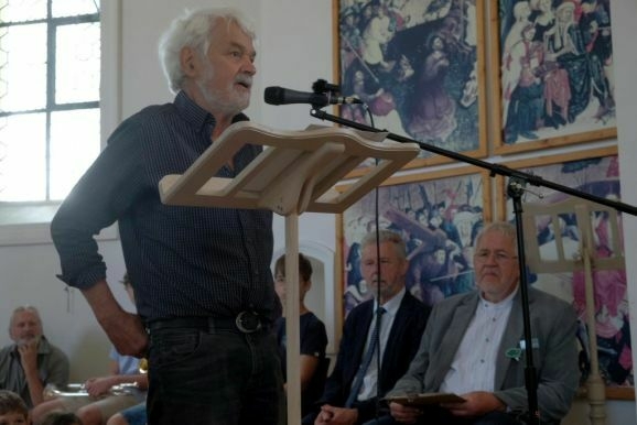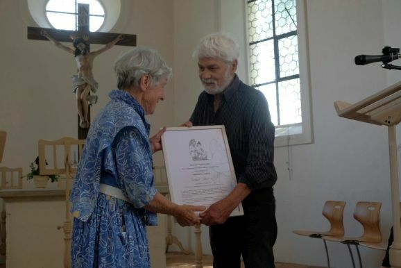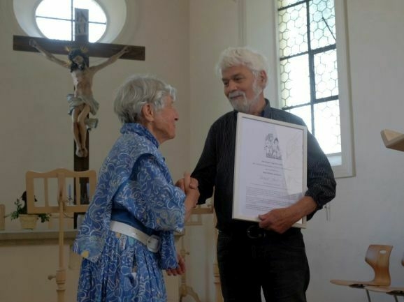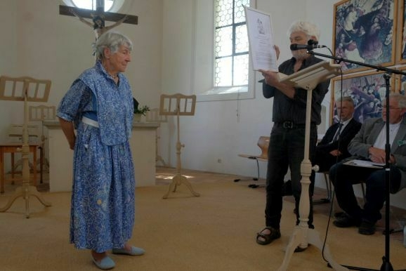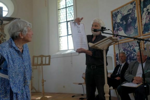 Die Tochter Adelgund Mahler legte großen Wert darauf, dass die Preisübergabe in der Heimat des Künstlers vollzogen wurde, wozu gleich drei Vereine als Gastgeber fungierten. Der Verein der Freunde und Förderer des Leprosenhauses, in deren Kapelle die Preisübergabe durch den Mitbegründer und Sprecher der Landesarmutskonferenz, Roland Saurer erfolgte, sowie der Förderkreis des Sepp-Mahler-Hauses, der in diesem Jahr sein 10jähriges Bestehen feiert und dessen Vorsitzender Uwe Gorzalka, der durch das Programm des Festaktes führte und auch erläuterte wie über den ersten Gregor-Gog-Preisträger Markus Ostermair der Kontakt zur Landesarmutkonferenz zustande gekommen war. Gorzalka geiselte in seinem Statement auch die von Russland im Ukraine-Krieg angewandte Taktik, Kultureinrichtungen gezielt zu zerstören: „Kultur ist überall unverzichtbar!“