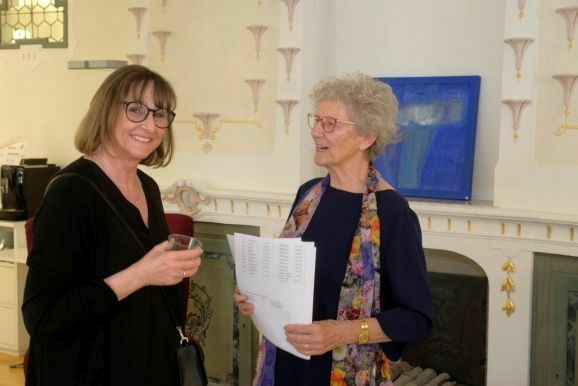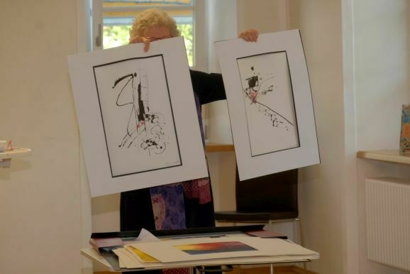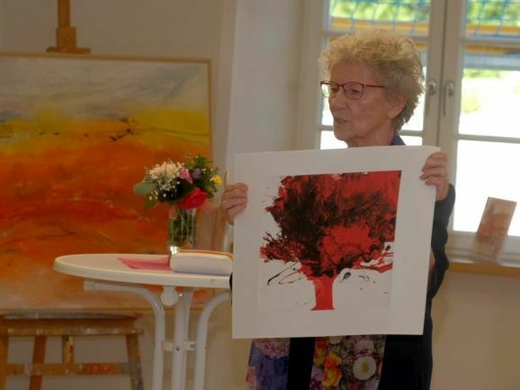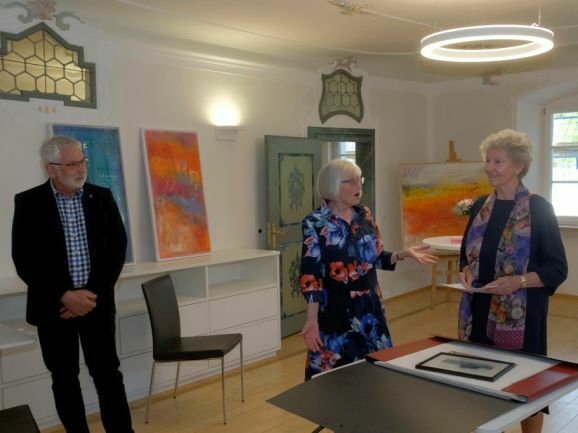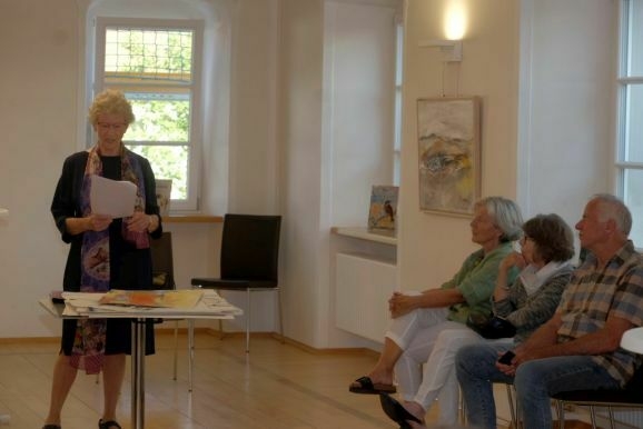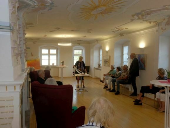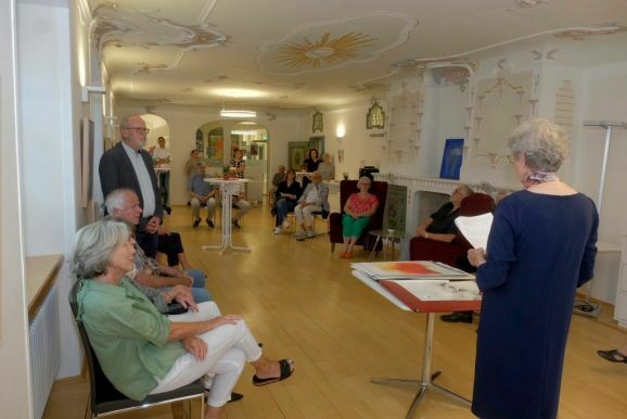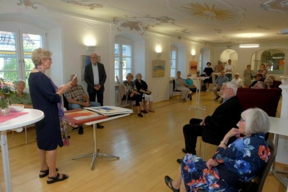 Zum Abschluss ihrer Präsentation, für die sie extra eine Mappe aus Werken ihrer verschiedenen Schaffensperioden mit gebracht hatte, bedankte sie sich bei der Galerieleiterin Rosemarie Stäbler und der Stadt für die Möglichkeit ihre Werke in Bad Wurzach ausstellen zu dürfen.