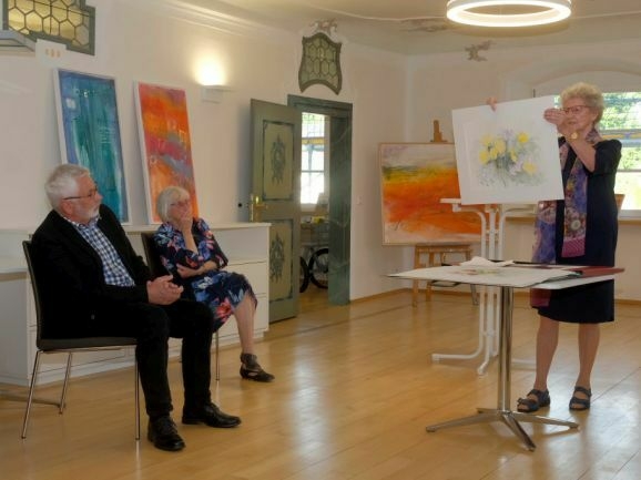 Nach der Begrüßung der Gäste durchden stellvertretenden Bürgermeister Klaus Schütt, der darin darauf verwies, dass die städtische Galerie sich die Förderung regionaler Künstler auf die Fahnen geschrieben habe – und Altusried zählte da auch dazu – stellte Hanne Schneider ihren künstlerischen Werdegang mit Arbeitsproben und ihre Arbeitsweise, gespickt mit vielen Anekdoten, den rund 30 Vernissagebesuchern vor.
