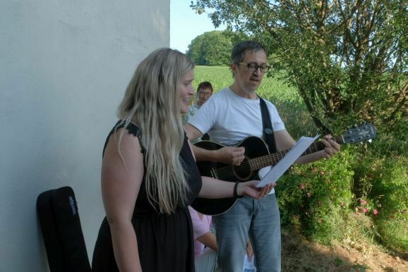 An der letzten Kapellenstation in Wengenreute erwartete mit der jungen und mutigen Selina Keckeisen, die nur mit ihrer Gitarre als Begleitung das Cohen´sche Hallelujah sang, in dessen Refrain die Pilger mit einstimmten. Judith Schöllhorn setzte mit ihrer Geschichte der unterschiedlichen zwei Engel einen letzten geistlichen Impuls.