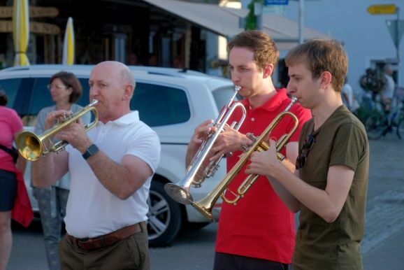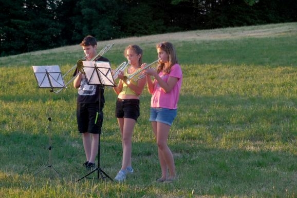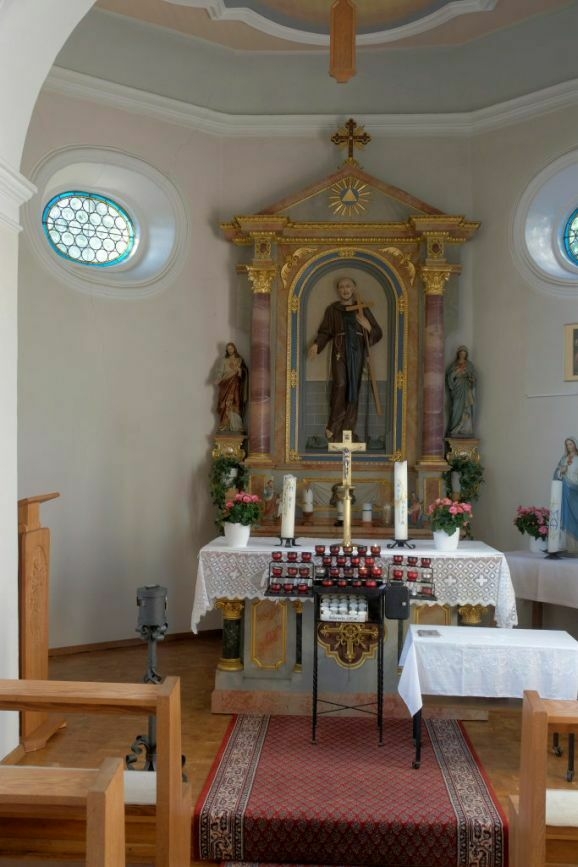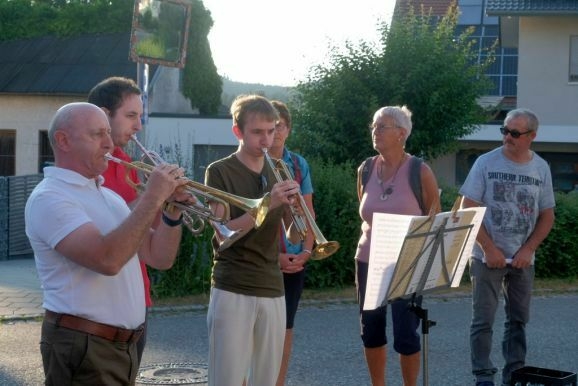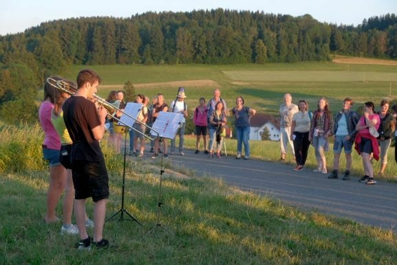 An der Kapelle in Gospoldshofen angekommen, erwartete die Wandergruppe ein besonderes musikalisches Highlight: Der in der Region sehr bekannte Konzerttrompeter Hermann Ulmschneider spielte gemeinsam mit seinen Söhnen einige Stücke, die selbst die Reisegruppe nebenan beim Sennerstüble andächtig zuhören liess.