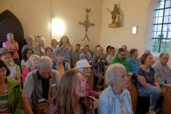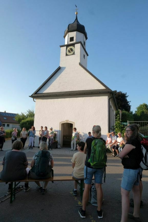 Vom Startpunkt bei der St. Ulrich Kirche in Seibranz, wo die Gäste freundlich empfangen wurden, startete die musikalische Pilgerreise u.a. mit den „Irischen Segenswünschen“. Zunächst führte der Weg hinauf zur Kapelle nach Starkenhofen, von dort in einem stetigen Auf und Ab hinab zur St. Agatha Kapelle in Gospoldshofen und von dort wieder hinauf zur Martins-Kapelle nach Wengenreute. Gemeinsam mit rund 50 weiteren Pilgern begab sich auch unser Reporter Ulrich Gresser an diesem schönen Sommerabend auf die 10 Kilometer lange Strecke.