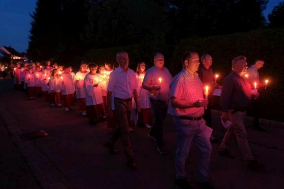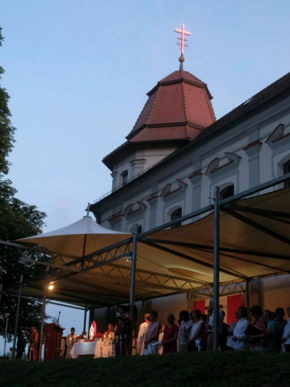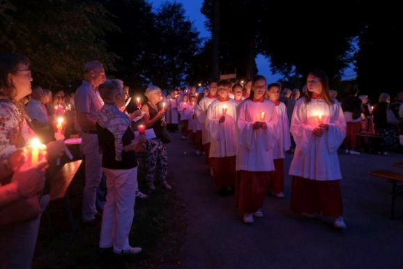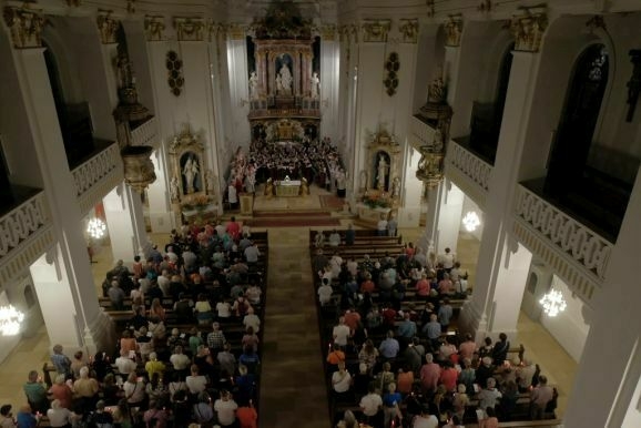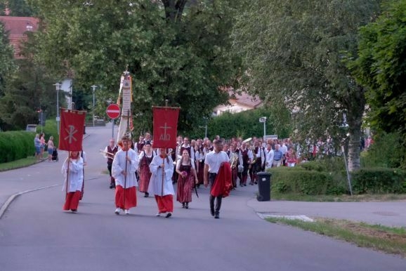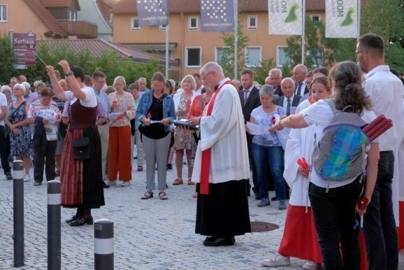 Es waren wieder sehr viele Gläubige, die am Sonntagabend der Stadtkapelle und dem Kirchenchor hinauf zum Gottesberg folgten, um sich auf das große Glaubensfest am Freitag einzustimmen und vorzubereiten.
